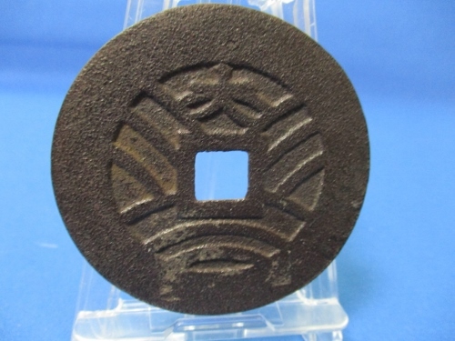 大型の鉄製で絵銭の中ではかなり珍しい部類です。