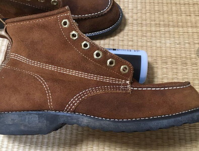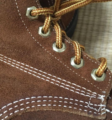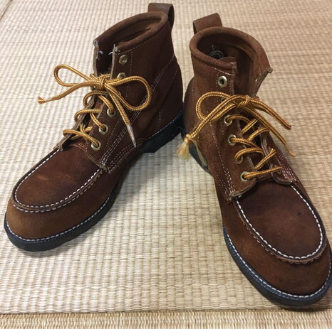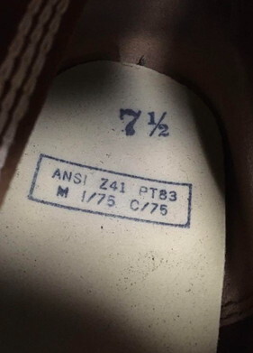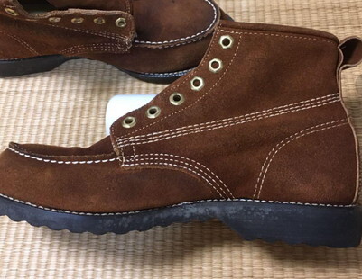 シューズ丈ミドル カラーブラウン ブーツ型ワーク 素材ラフアウトレザー ■特徴 ・PT83規格のUSA製ワークブーツ (トゥーガード入り) ・メーカー名の記載無し ・各所トリプルステッチ ・80年代頃までレッドウィングのアイリッシュセッターでも見受けられたスクウェアステッチ有 ・鳩目は六角仕様 ・ダークブラウンのラフアウトレザー ・オイルレジスタントソール(patent刻印有) ■概略寸法(インソールスタンプ 7_1/2 25㎝(小さめかも)) ソール長さ 29㎝ ソール幅 10.5㎝ ※お手持ちの靴寸法と比較確認願います。 ★レッドウィング、チペワ、ダナーなど現行大手の製品ではない可能性があります 特定に至りませんがソログッドなどのブランドを持つウェインブレナー社の現行にまだそっくりなのがあるのがすごい リアルアメリンカンビンテージ rav モックトゥ ヴィンテージ ハンティングブーツ