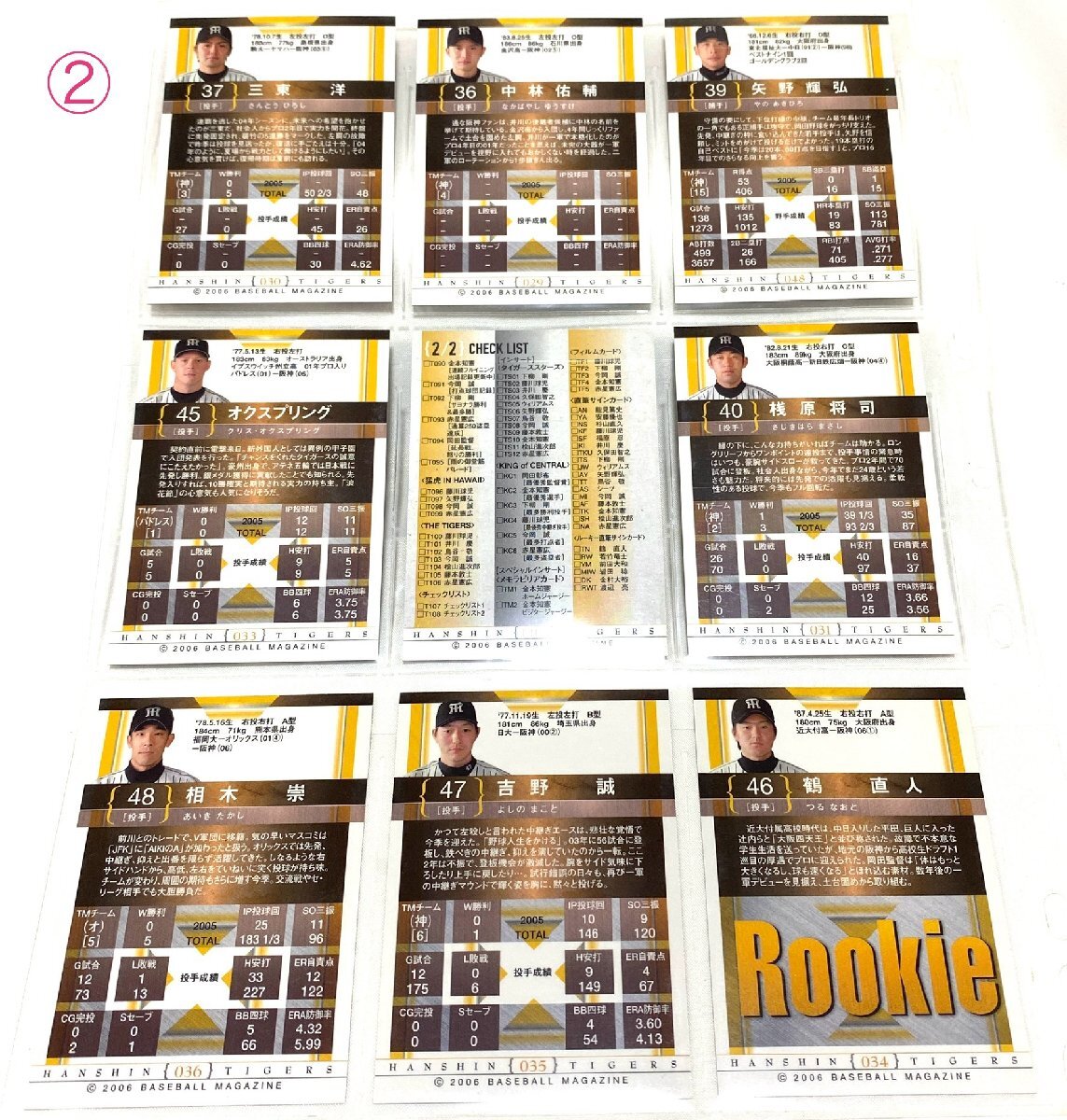 保管品 美品 BBM 2006 三東 中林 矢野 オクスプリング 桟原 相木 吉野 鶴 阪神タイガース チェックリスト 9枚セット まとめ売り ②