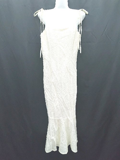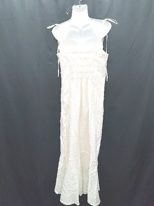 ◇ NICE CLAUP ナイスクラップ ジャガード きれいめ キャミソール ロング ワンピース サイズF アイボリー レディース P