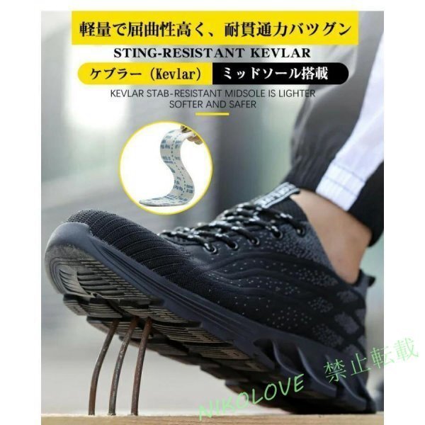 ●釘踏み抜き防止 ミッドソールはケブラー防弾繊維を特別に採用するこそ、驚きの1100Nに達するまでの圧迫力に耐えられ、釘などに踏んでも平気。