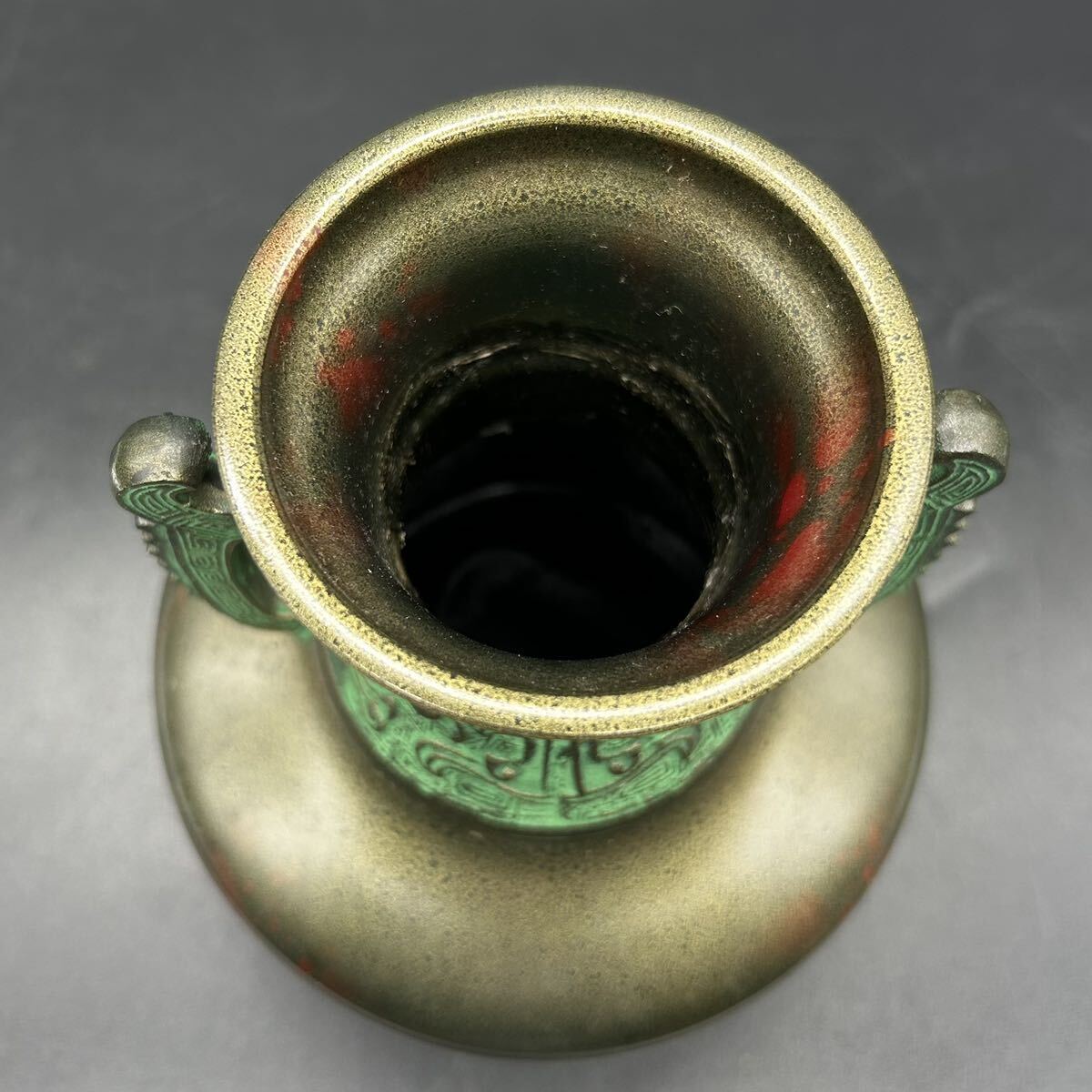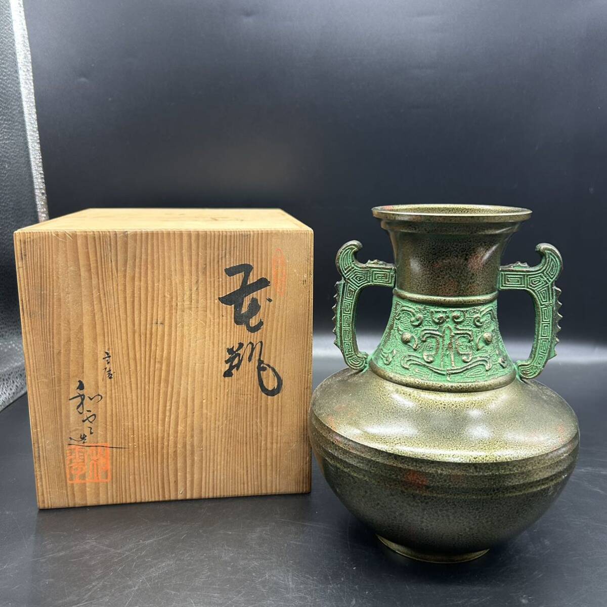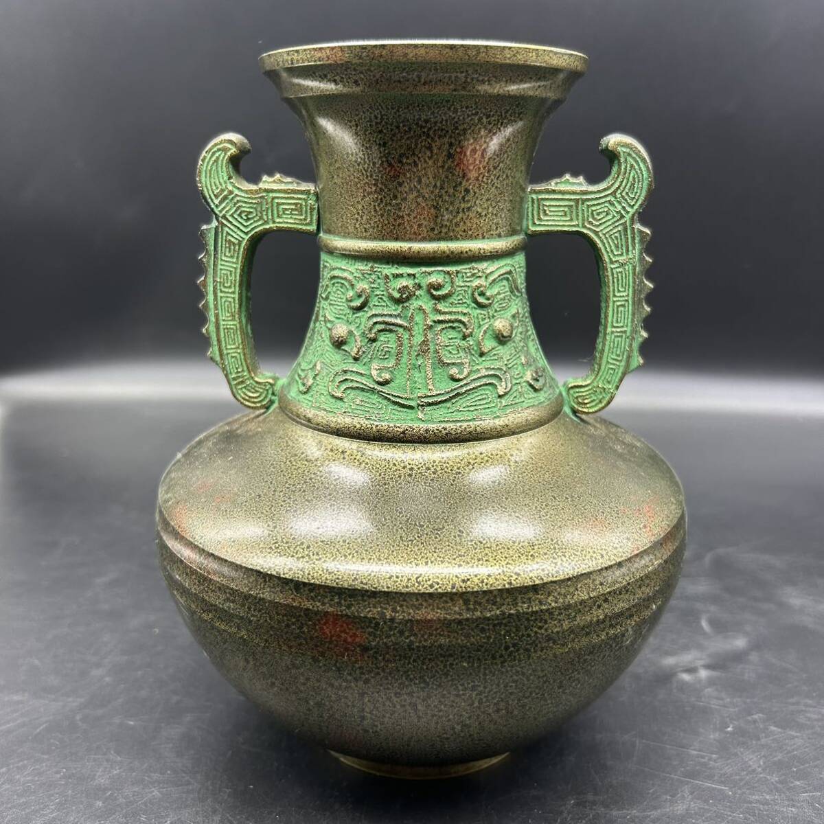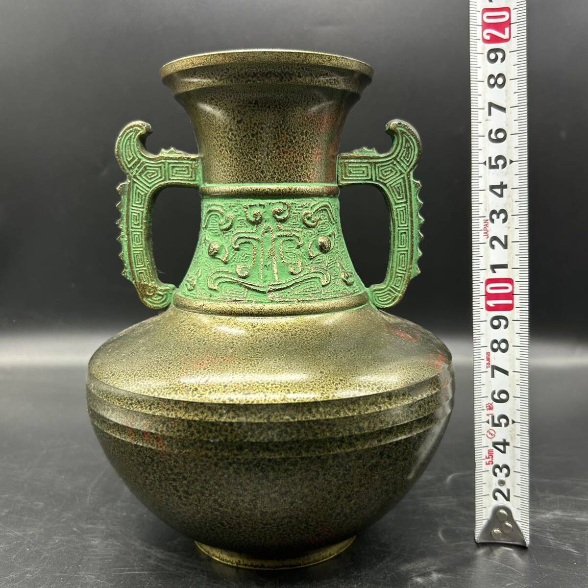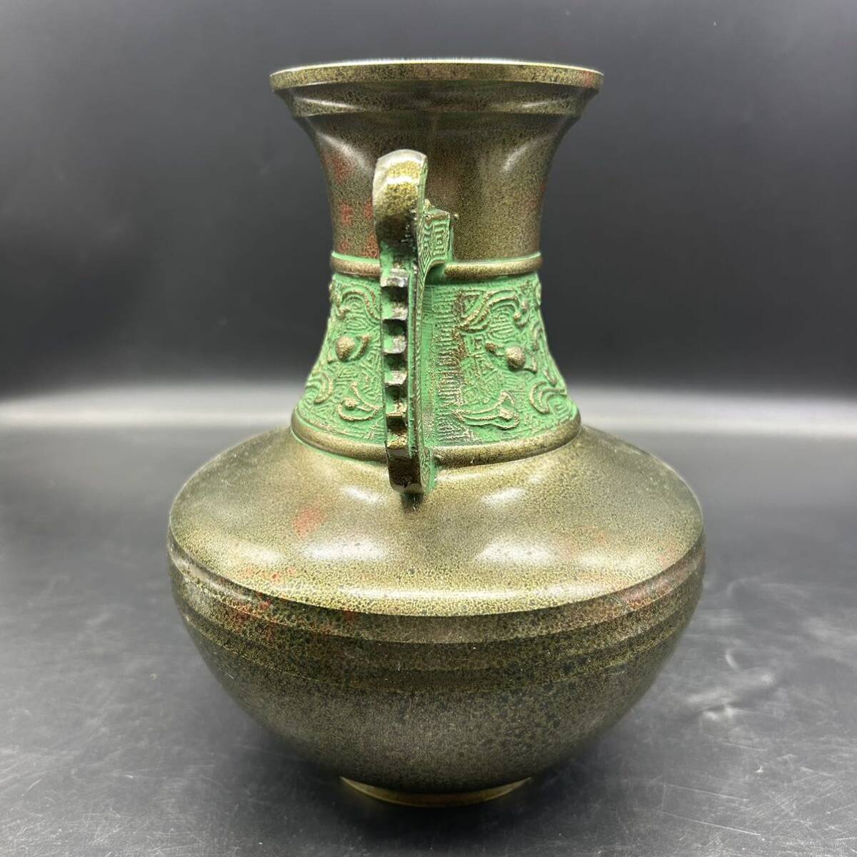 高岡銅器 和雲 雷紋双耳 饕餮紋 花瓶 花入 花生 花器 金属工芸 銅製 銅器 古美術 ヤ13
