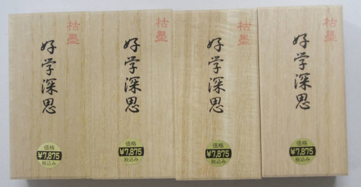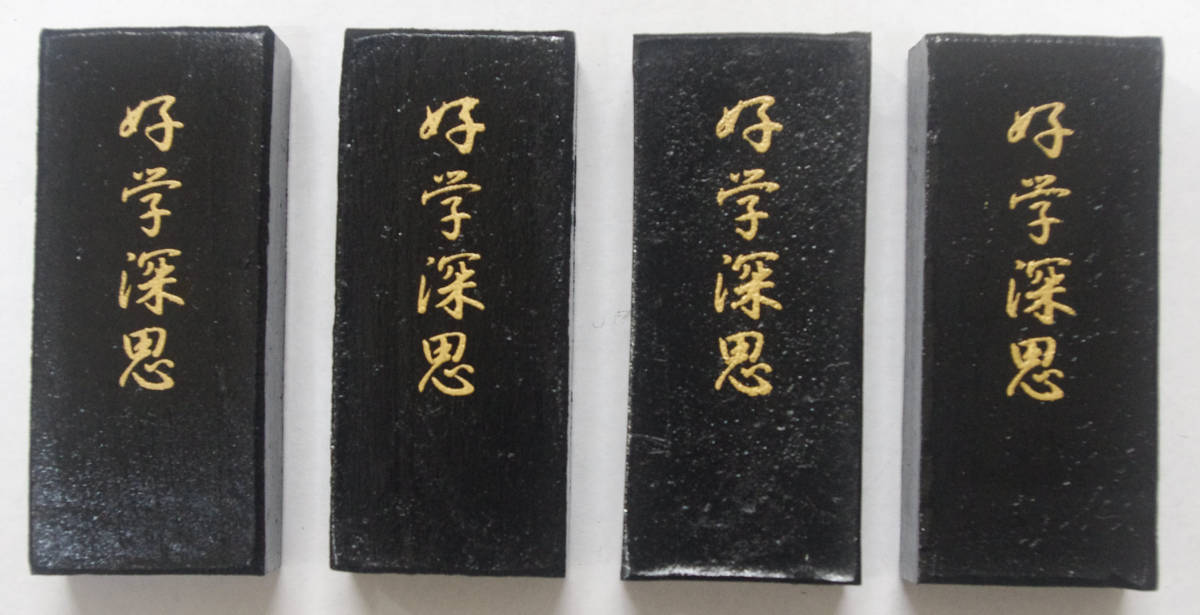 3丁型「好学深思」を4本セットで出品致します。 紅花墨のように墨が光っております。 仮名~漢字・調和体まで使用できる油煙墨になります。 サイズ 約 縦80×横34×厚14mm 重さ48g 土日は休みの為取引連絡、発送が出来ません。 平日のみの対応になります。