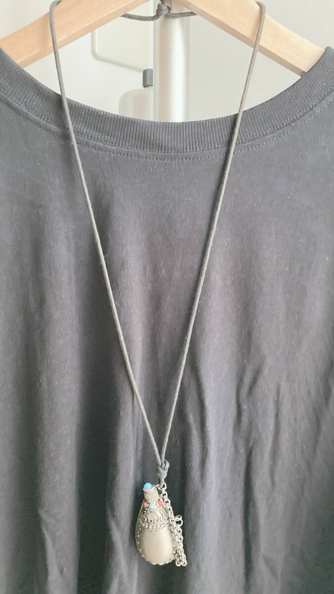 レア ヴィンテージネックレス シルバー 香水ボトル モロッカン 紐 ロング Perfume Potion Poison Bottle☆Vintage  k0703
