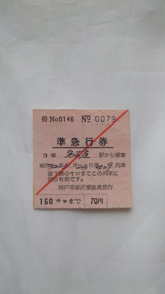 ▼国鉄神戸車掌区発行▼名古屋から準急行券3等▼軟券昭和32年
