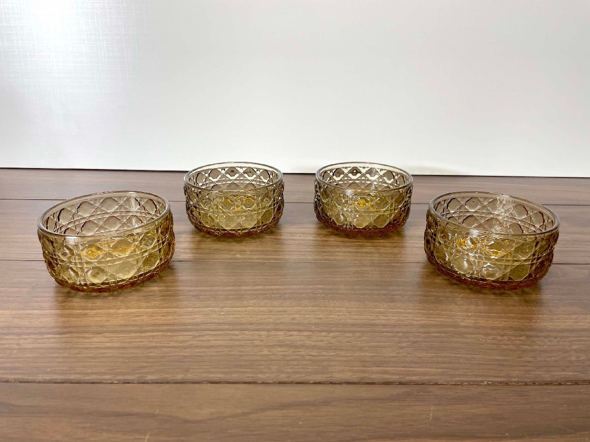 【福岡】硝子製 器 4個セット◆食器◆小皿◆昭和レトロ◆W103 H55◆モデルR展示品◆TS8149_Ts