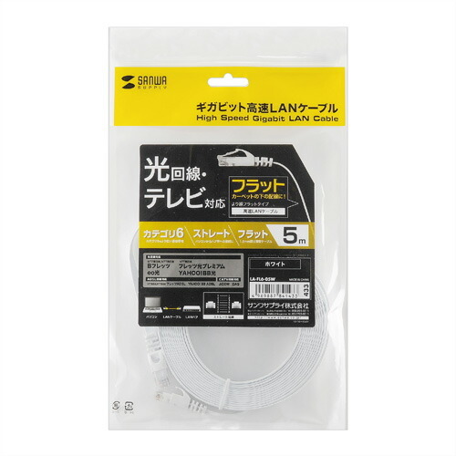 薄さ1.5mmのフラットタイプ、ツメ折れ防止カバー付きギガビット完全対応LANケーブル。5m・ホワイト。