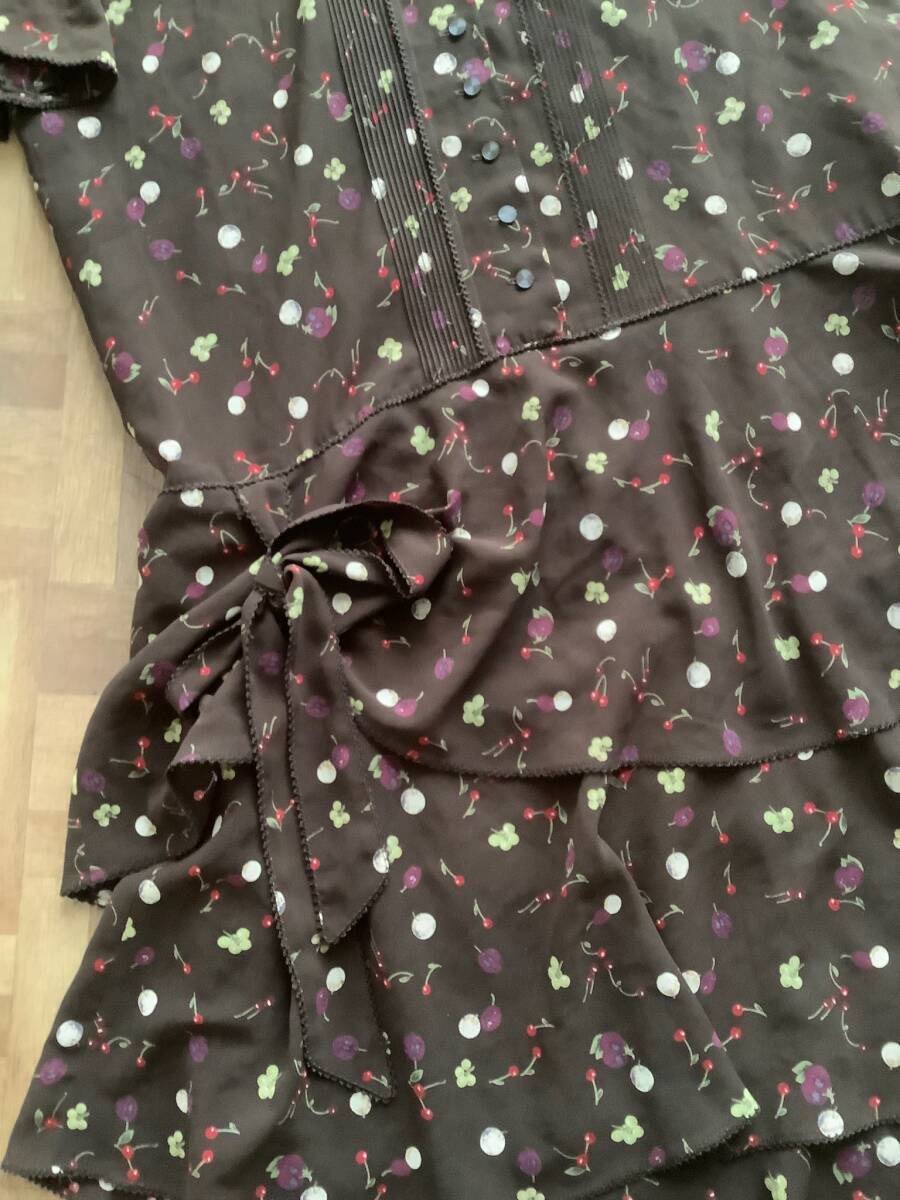 KANEKO ISAO フルーツ柄ピコフリル ティアードロングワンピース