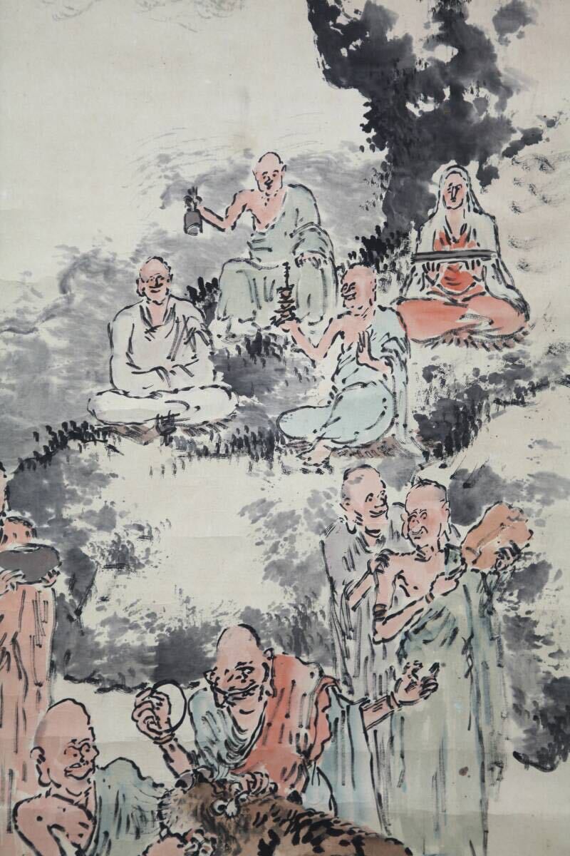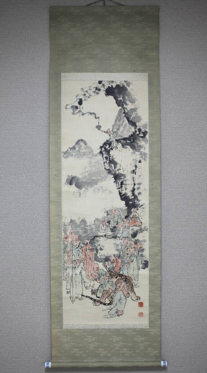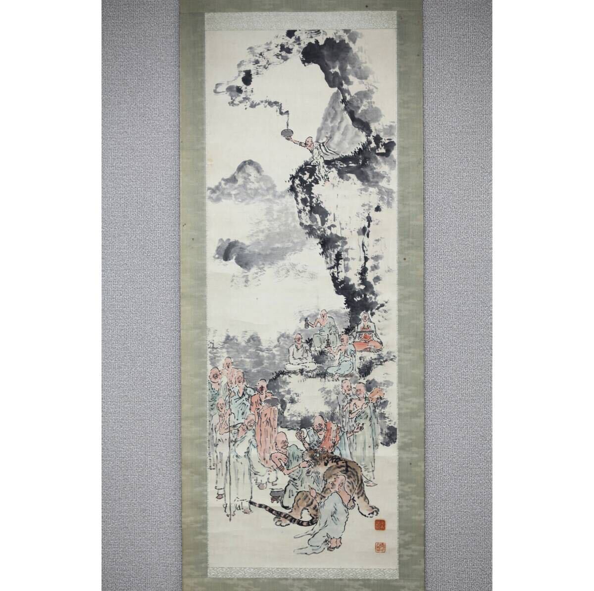 【真作】【風車】 倉田松涛 「十六羅漢図」◎肉筆紙本◎秋田の名家 秋田画人 平福穂庵師事 巽画会 角館四条派 日本美術協会会員 帝展 南画 | ||||||||||||||||||||