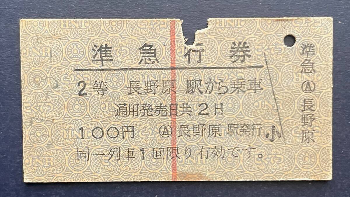 国鉄、硬券、準急券 吾妻線 長野原駅、昭和37