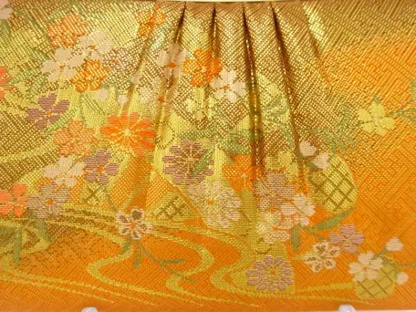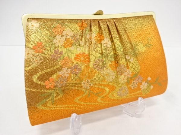 ys7080039; 佐賀錦扇に花・流水模様織り出し和装バッグ【アンティーク】【着】