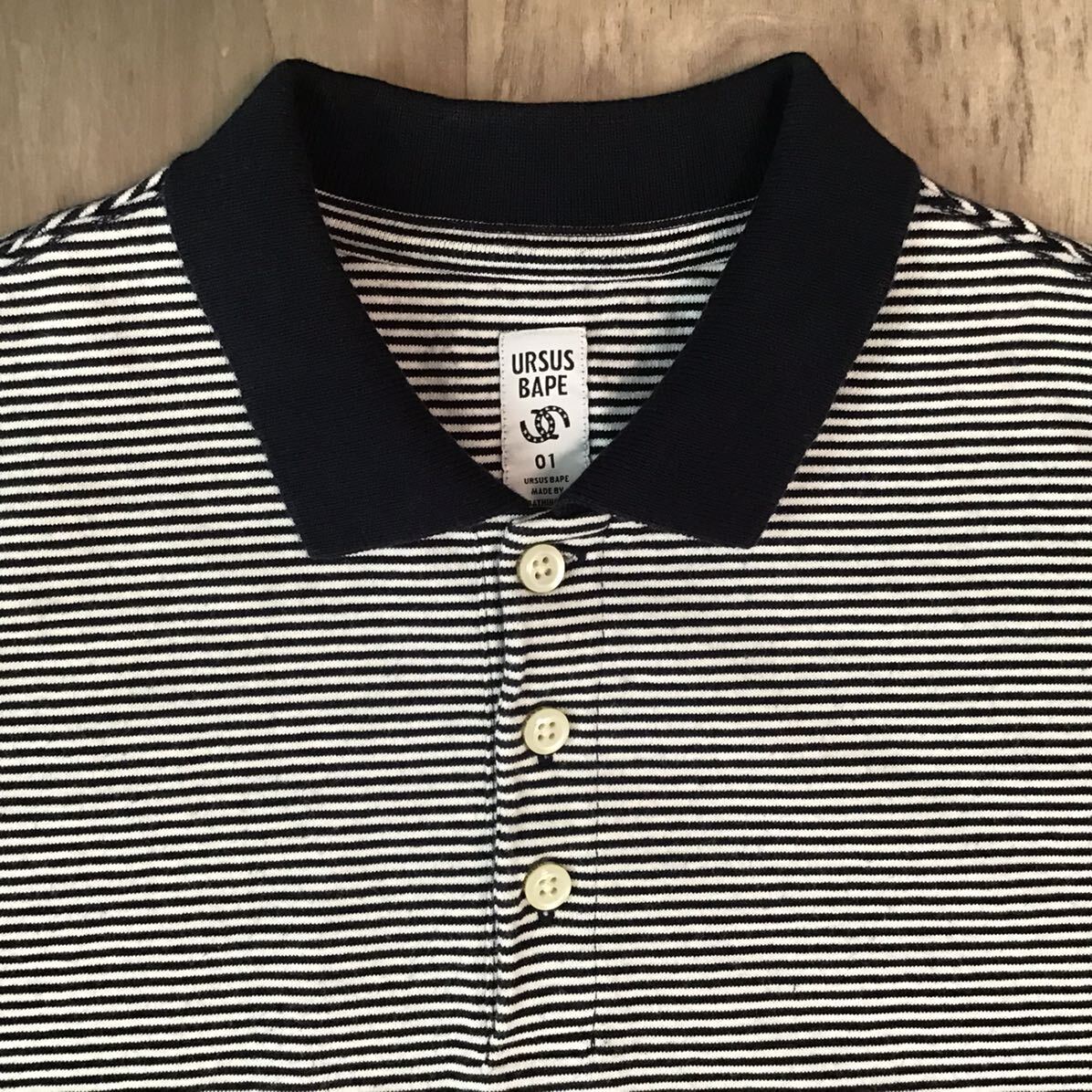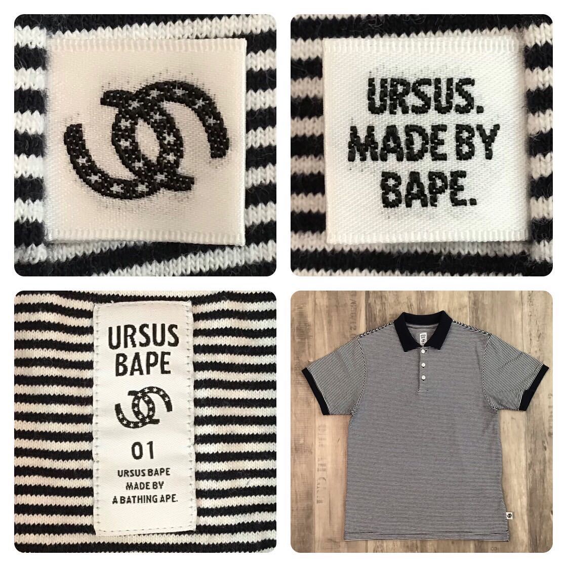 a bathing ape URSUS BAPE ボーダー ポロシャツ ブラック × ホワイト Sサイズ です★