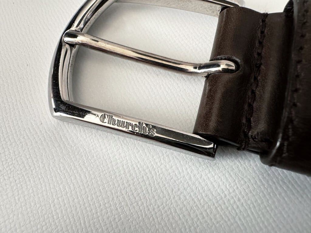 Church's size105-42 イタリア製レザーベルト ダークブラウン シルバー チャーチ