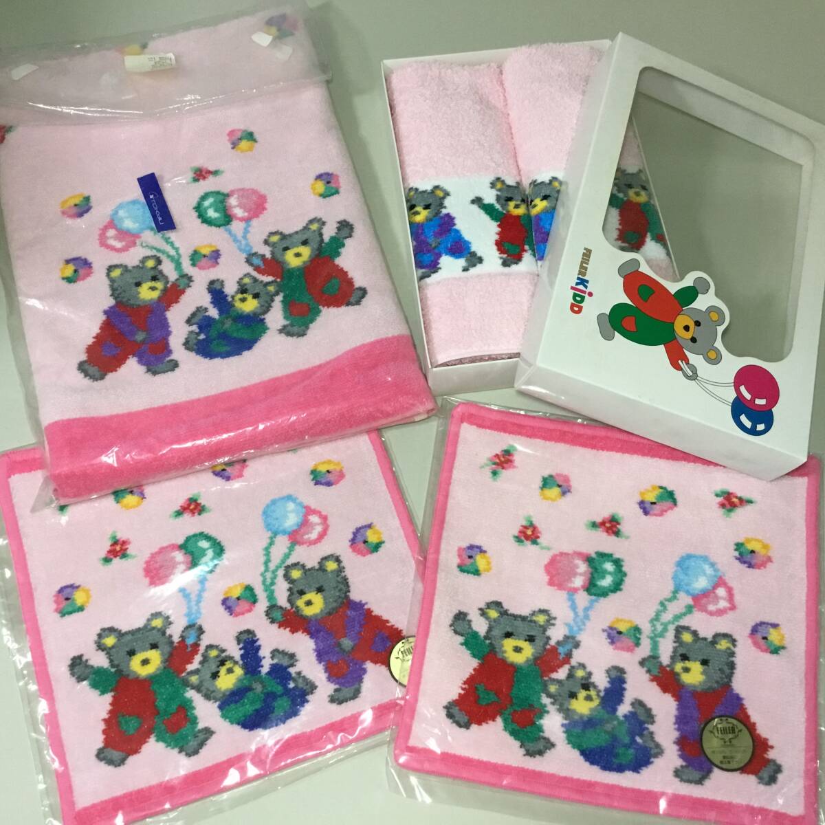 バスタオル(プティバスおくるみ ) 1枚 + フェースタオル2枚 + ハンカチ2枚の5点セットです。