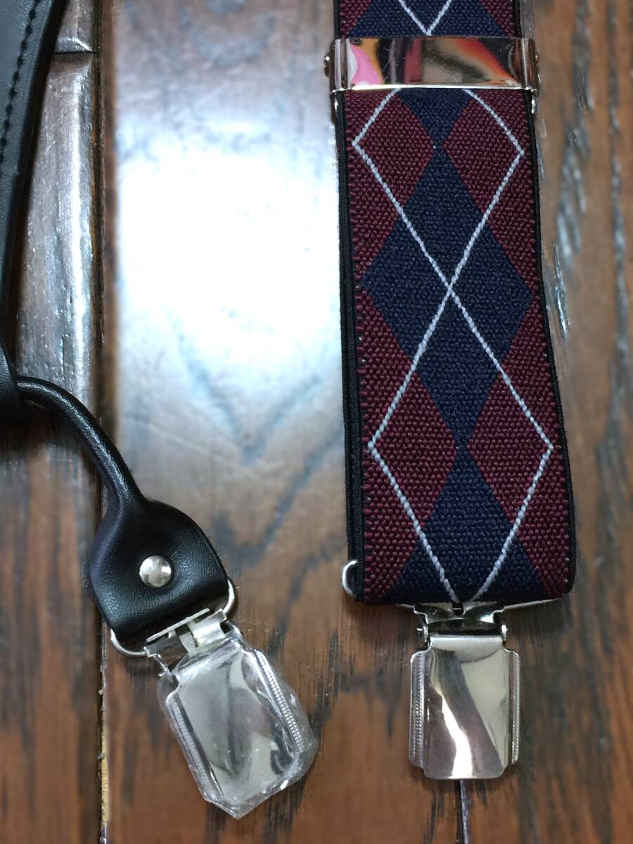 クリップタイプですのでサスペンダーボタンが付いていないパンツにも使用可能です。