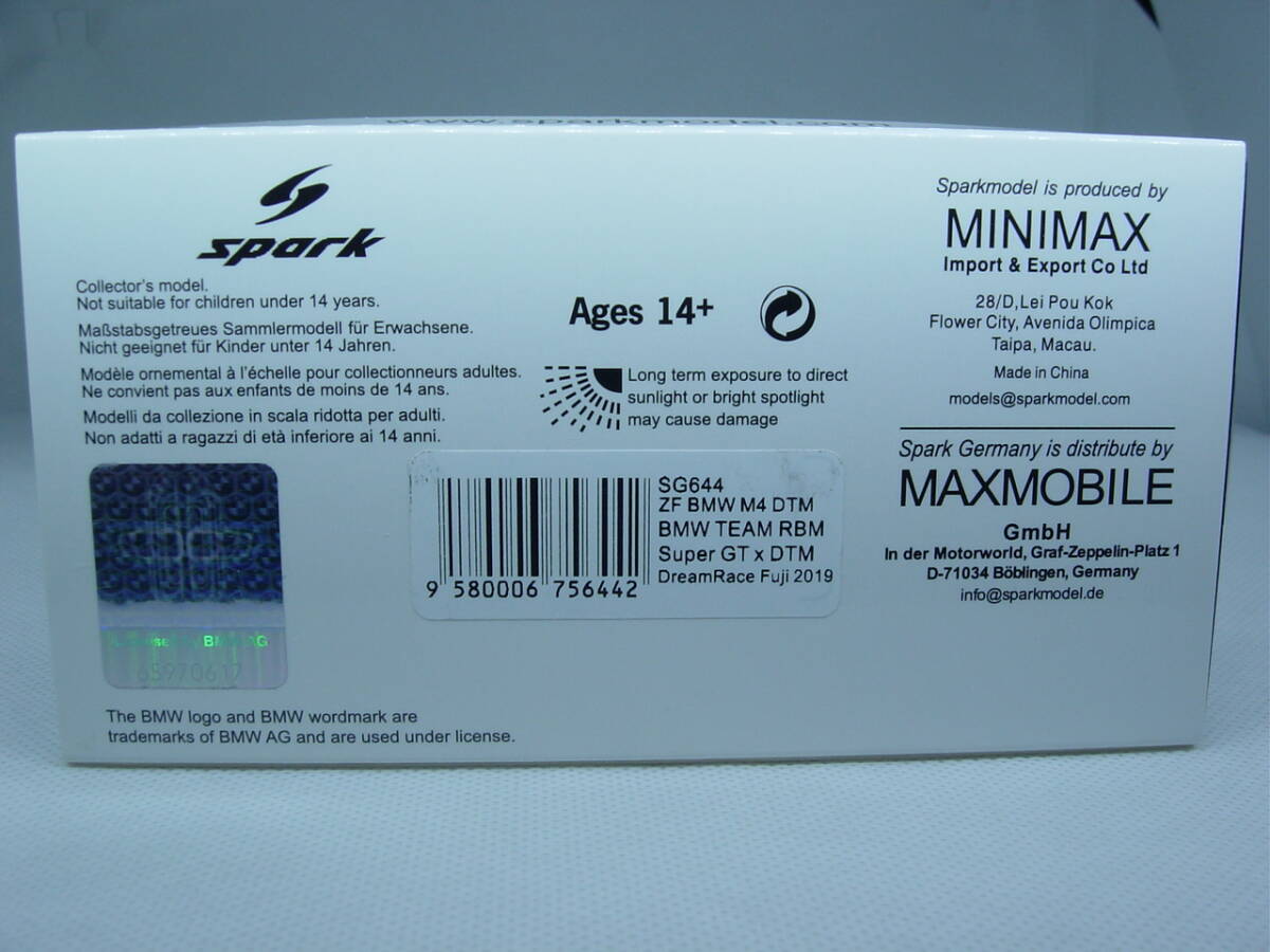 spark 1/43 ZF BMW M4 DTM TEAM RBM Super GT × DTM DreamRacce Fuji 2019 #4 A.Zanarrdi ザナルディ スーパーGT 特別交流戦