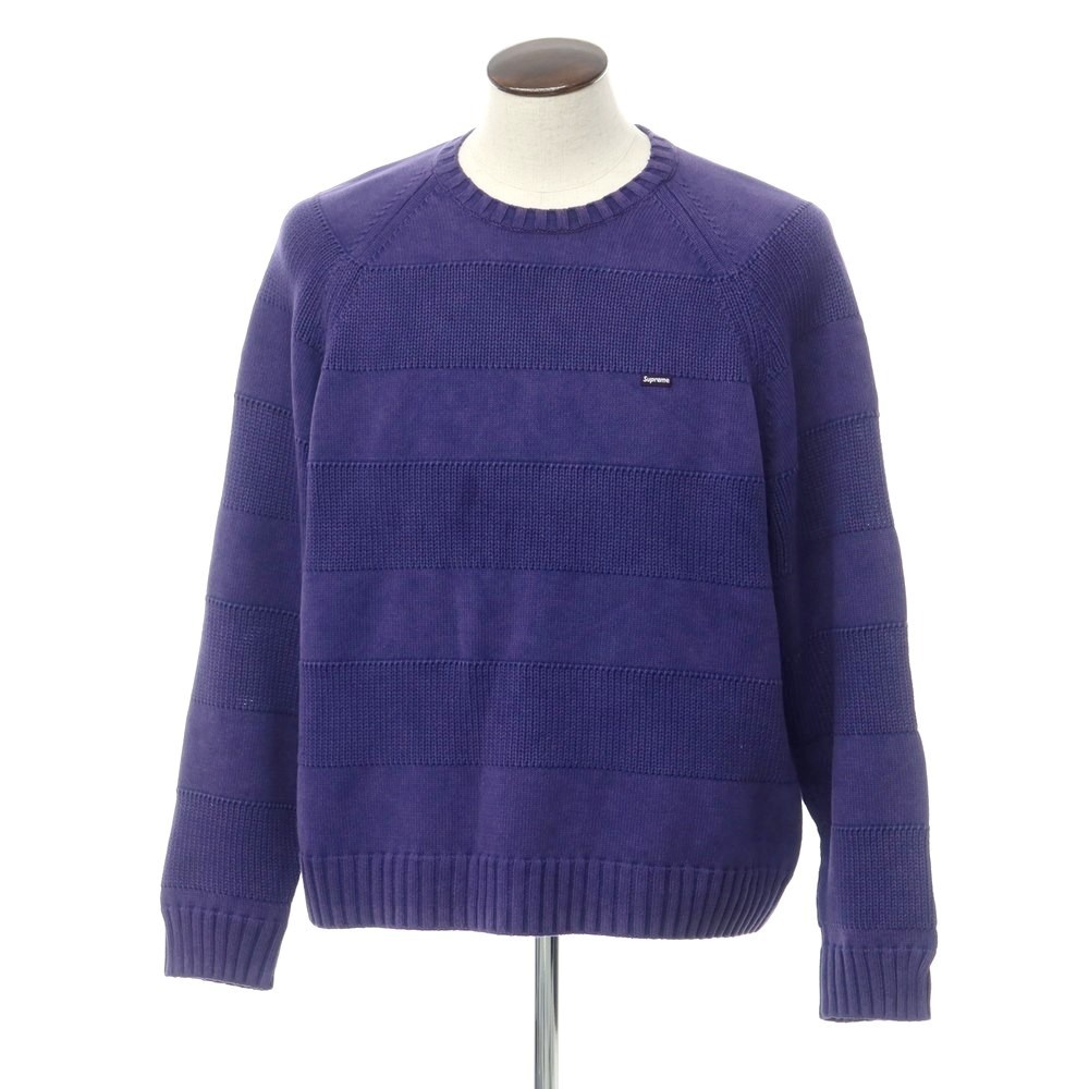 【中古】シュプリーム Supreme 2023年春夏 Small Box Stripe Sweater コットン クルーネックニット パープル【サイズL】