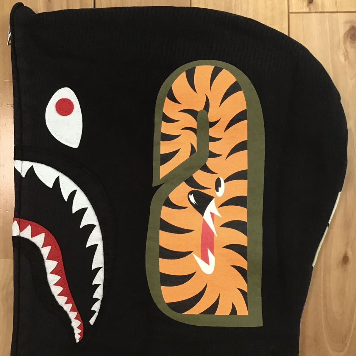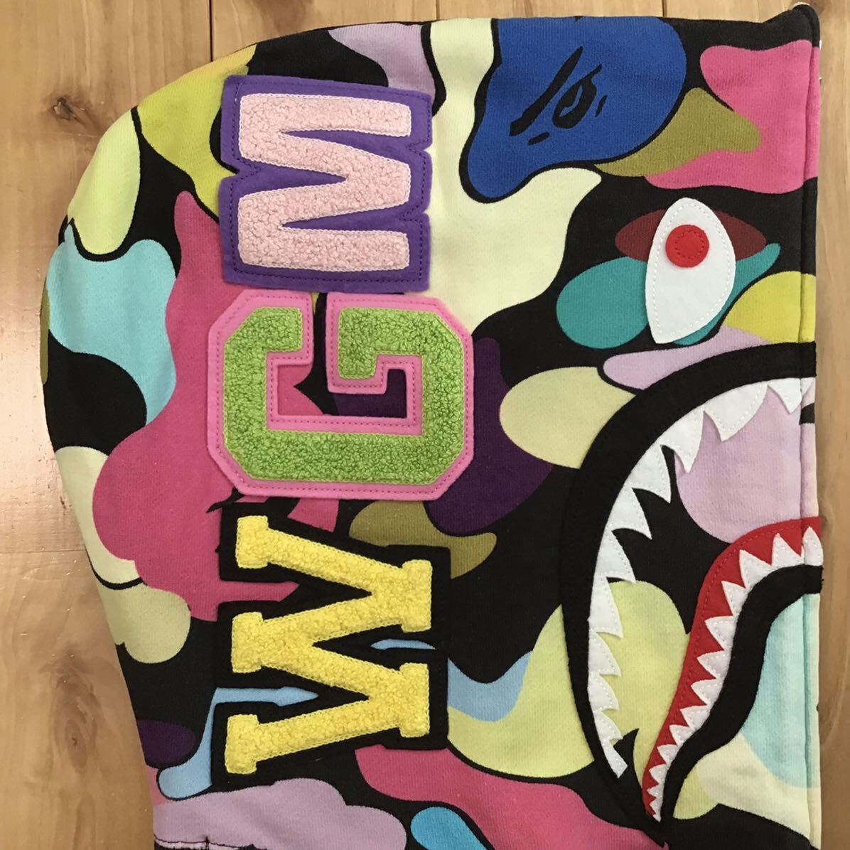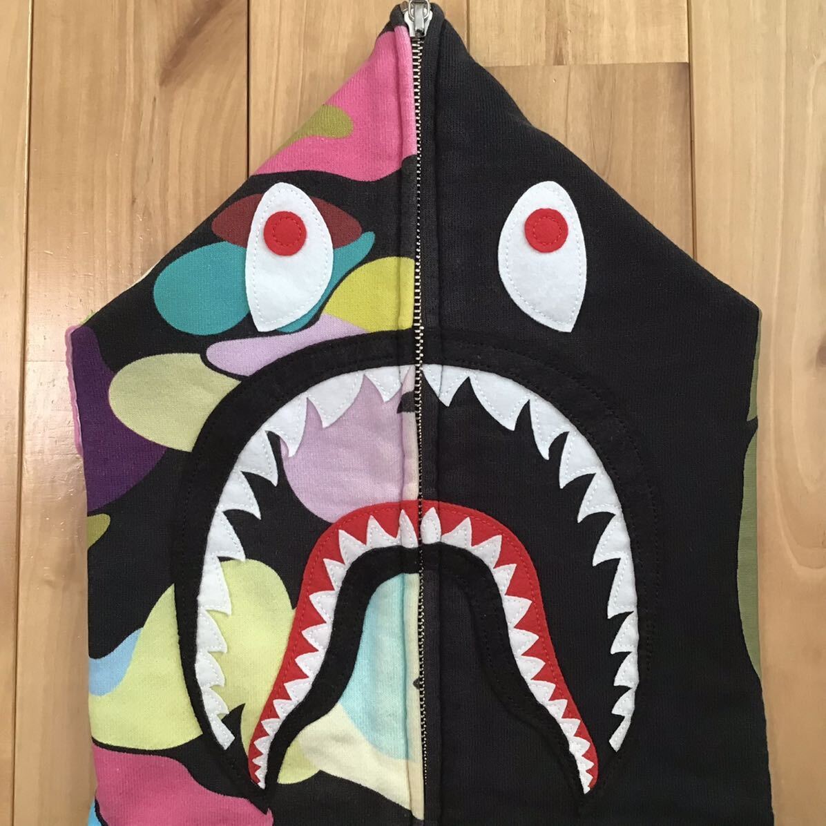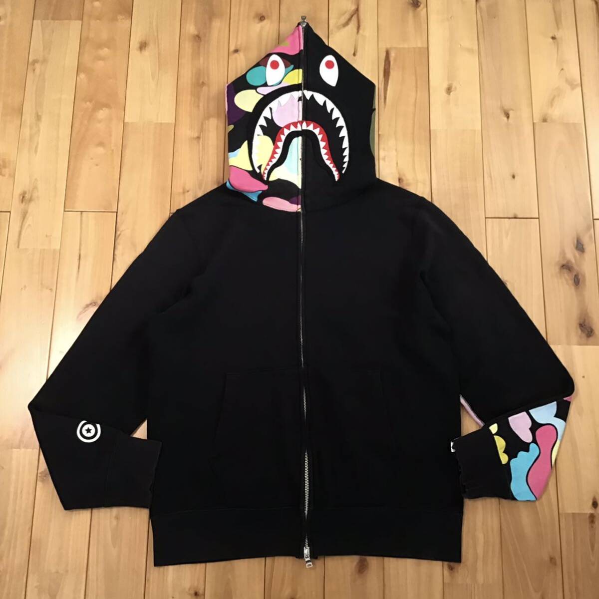 a bathing ape giant multi camo × ブラック シャークパーカー Mサイズ です★