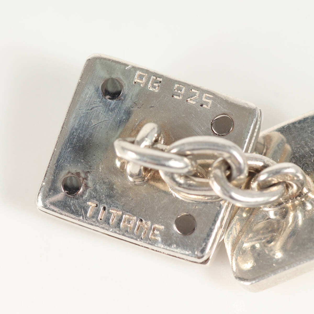 【ブランド名】HERMES(エルメス) 【素材】シルバー925 チタン 【商品説明】 スクエアタイプのシルバー925とチタンを使用したカフスボタンになります。カフスではセリエタイプが有名になりますが、こちらの遊び心のあるデザインもおすすめです。 【カラー】シルバー 【サイズ】FREE 縦約1.2cm×横約1cm 【状態】詳細を参照 ・細かな擦れキズ、若干のクスミはございますがまだまだご愛用いただけます。 【付属品】ケース ![]() ※色がある場合、モニターの発色の具合によって実際のものと色が異なる場合があります。 お問い合わせに関しましてはメールのみでのご対応とさせていただいておりますのでご了承下さいませ。 |