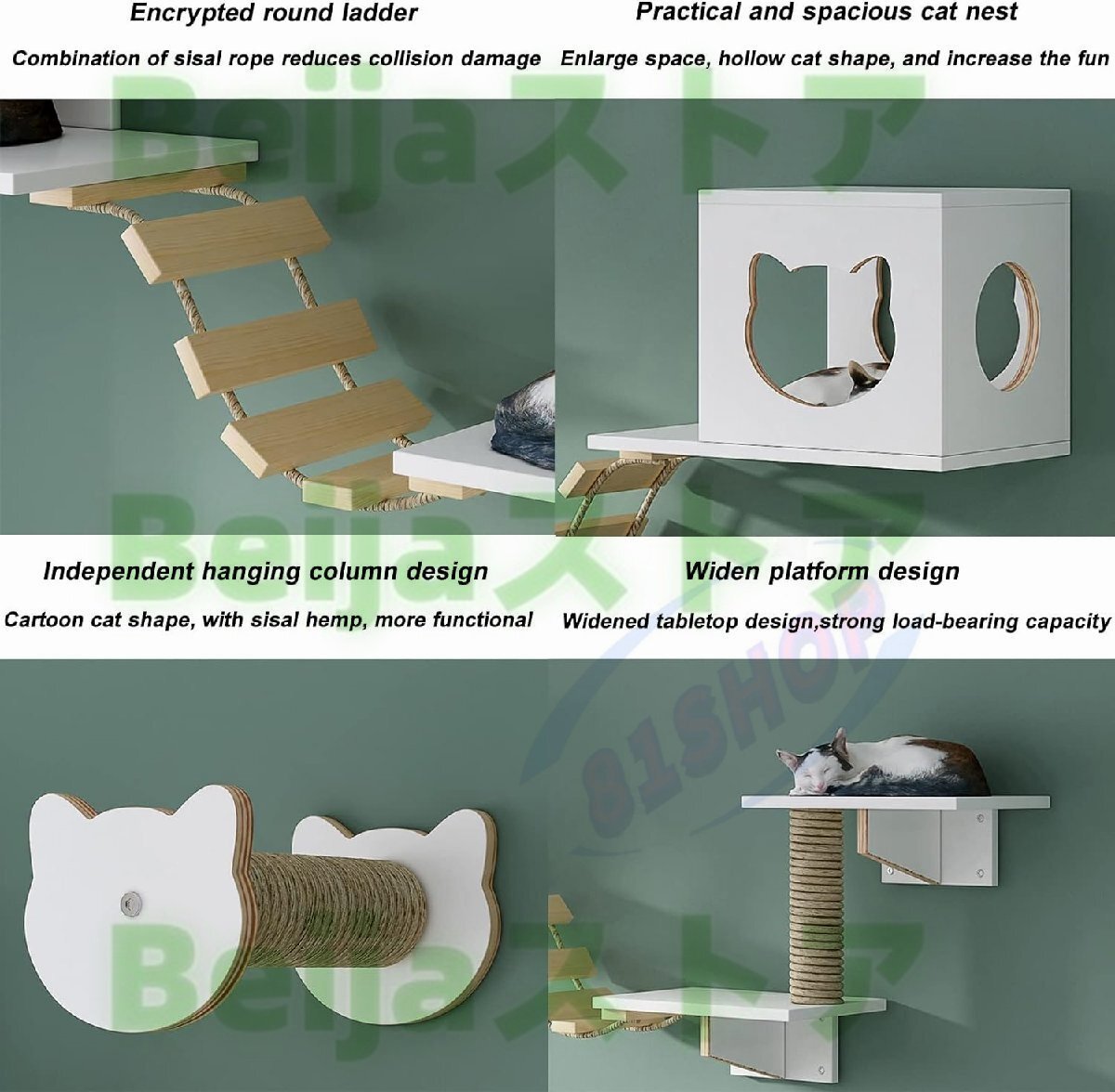 家のスペースが限られているため、子猫ができるだけ高く登ることができません。彼らの自然な本能を抑える猫の棚の数が単調で少ないため、猫が遊んだり休んだりするのに十分ではありませんそれなら、ウォールキャットケーブシェルフブリッジスクラッチポストセットをお見逃しなく!猫は高く登る必要があります都会の猫の飼い主にとって、小さなアパートで猫が登ったり、運動したり、遊んだりするためのスペースを見つけるのは難しいことです。しかし、猫は彼/彼女だけに属するスペースが必要です.彼らは高さを楽しみ、王国を調査するためにそこに止まります.猫のウォールクライミングシェルフはあなたにとって完璧な選択です.インストールが簡単ボードに文字と数字でマークを付けました。同じ文字と数字を合わせてください。パッケージのネジとアンカーを使用して、詳細な説明が段階的に表示されます。頑丈なスタッドに取り付けます。