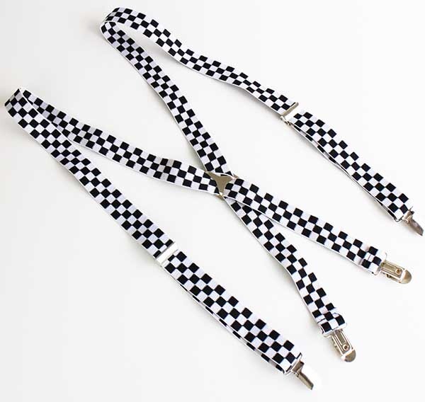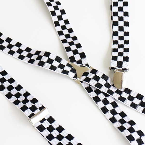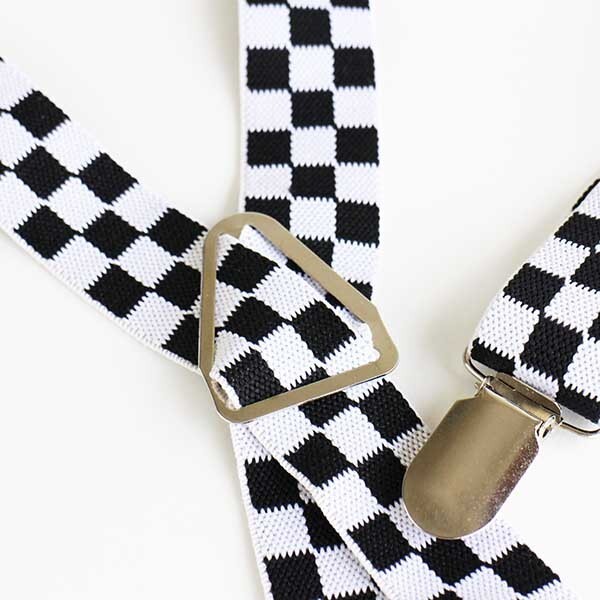 ★UNKNOWN チェッカー柄 クリップ式 サスペンダー 黒×白★192 オールド ブロック チェック ユニセックス レディース ボーイズ