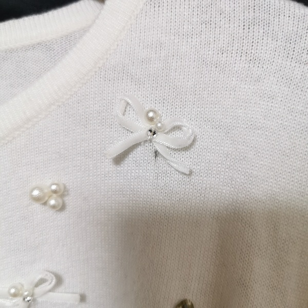 コンディション備考 | 前身頃左上のリボン付近に薄い汚れがございます。画像をご参照ください。特に目立つほどではありません。全体的に状態の良いお品になります。 |