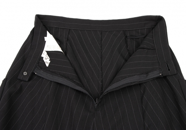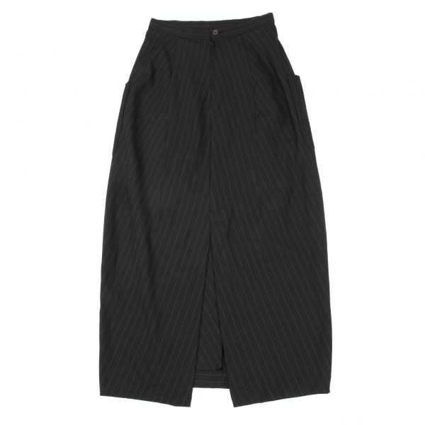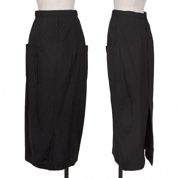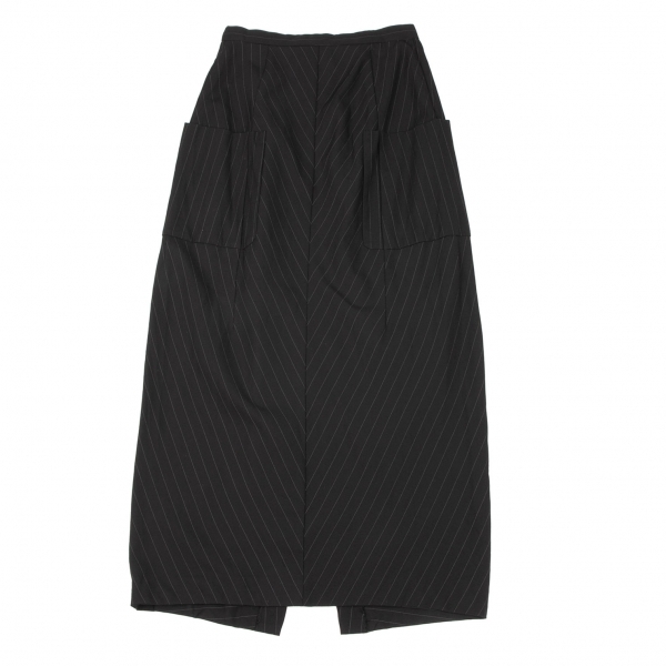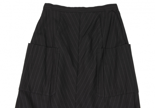 | コムデギャルソンCOMME des GARCONS ポケットデザインストライプウールスカート 黒グレーM |