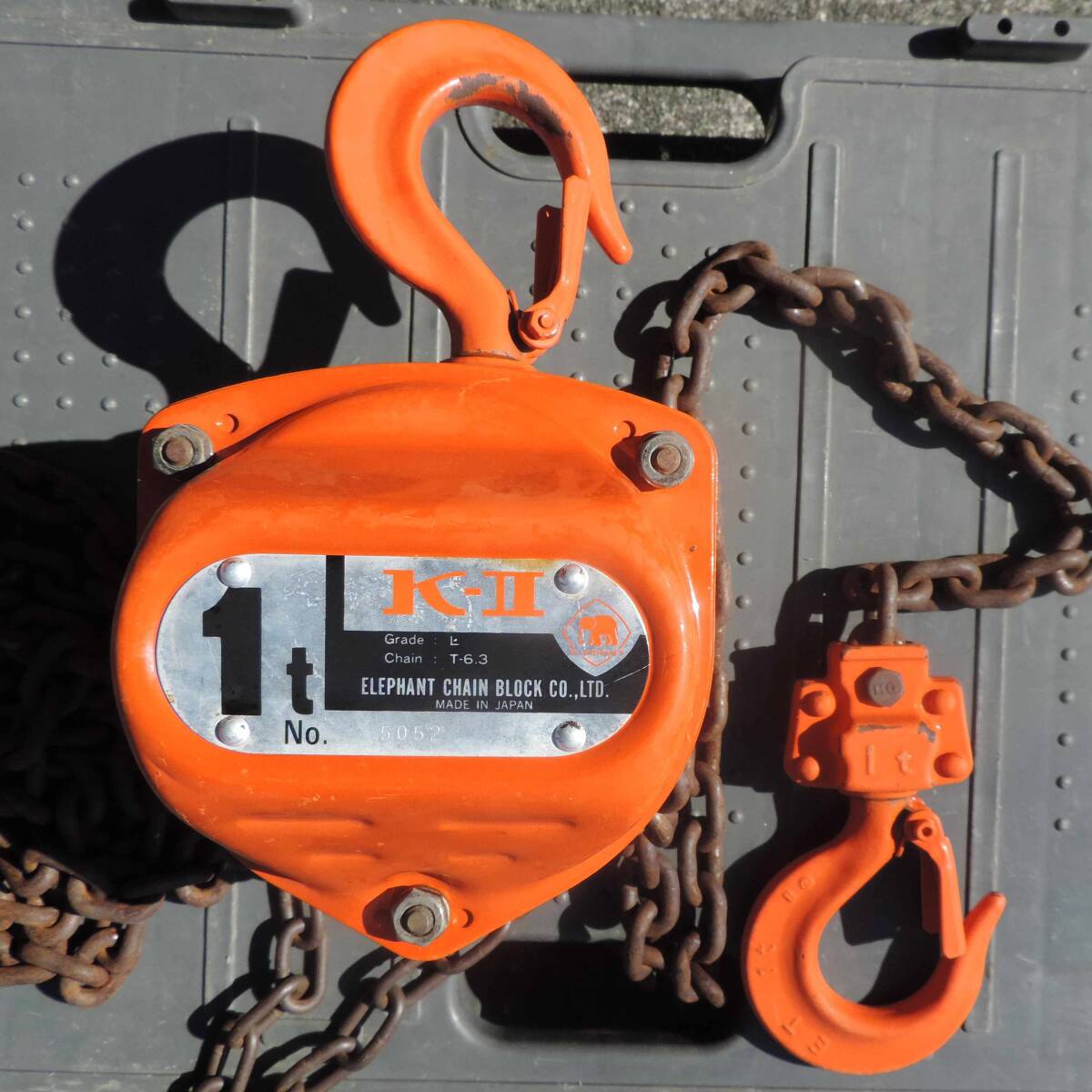 〈新潟〉象印 エレファント 手動 チェーンブロック K-Ⅱ 1t 1トン チェンブロック 揚程2.5m 荷揚げ 中古/ホイスト 吊り上げ ウインチ