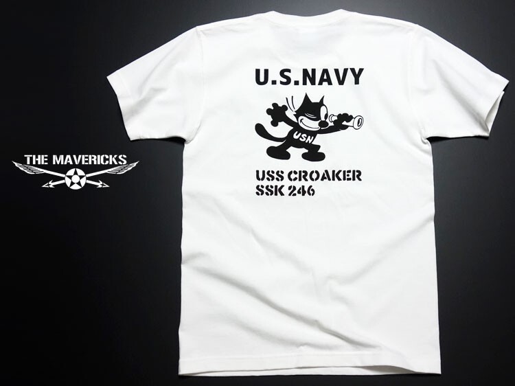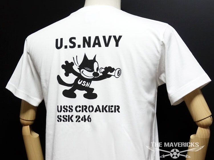 前面に「U.S.N.」ロゴプリント、背面にはアメリカ海軍の潜水艦「USS CROAKER」ステンシルデザイン。