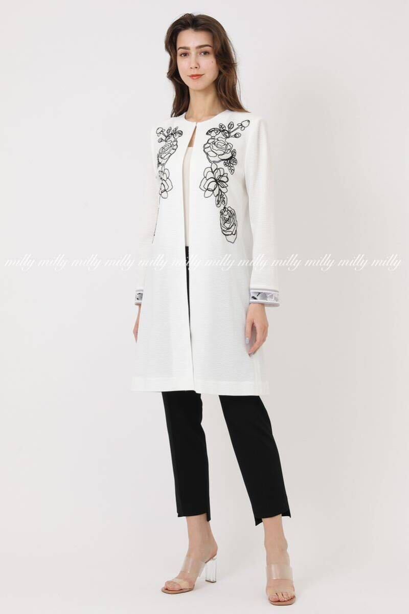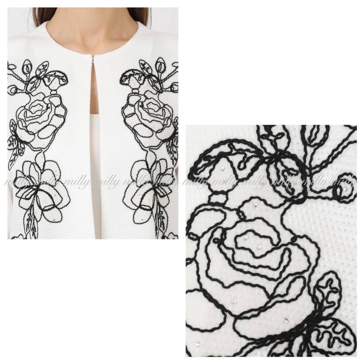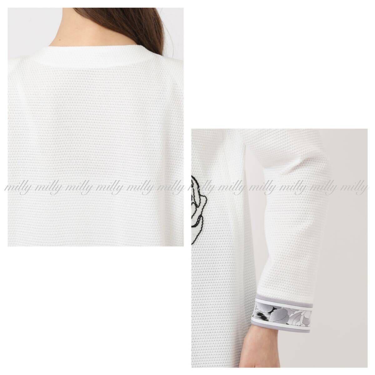 コットンニットの爽やかなメッシュ編みが風合いあるデザインジャケット。前身に施した線タッチの刺繍モチーフがお洒落度の高いエレガントなお作りです。ノーカラーのシンプルなフォルムで丈感長めの着映えするシルエット。袖口のLEONARDらしいライン使いやさりげなく光るラインストーンもポイントです。ひとつ留めフックで着脱しやすく、様々なシーンで活躍してくれるアイテムです。