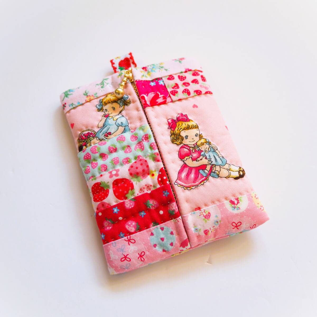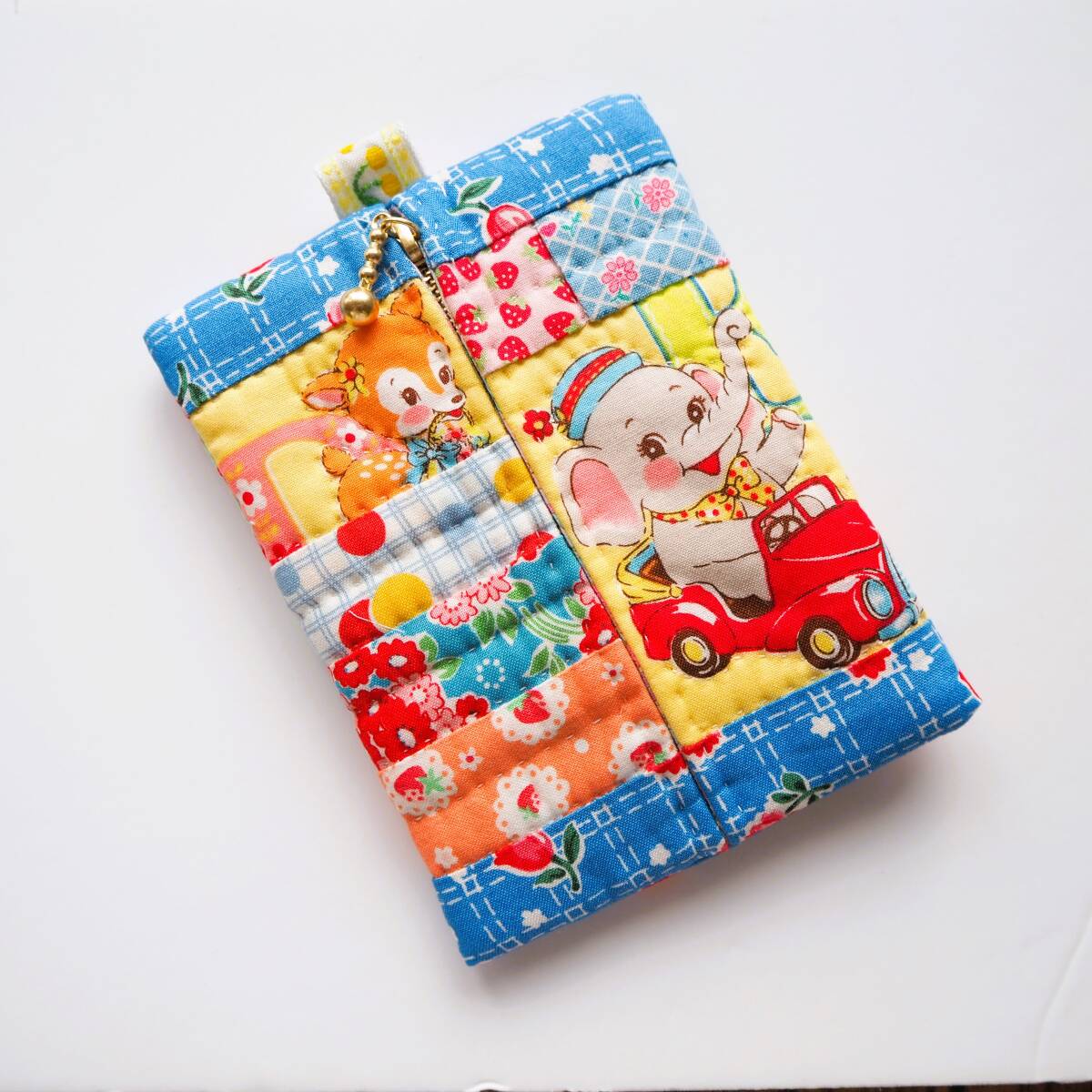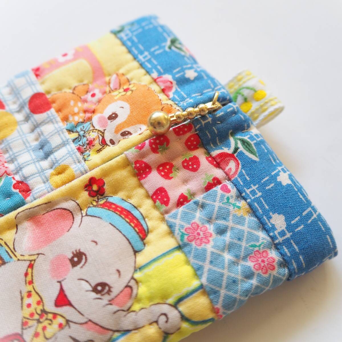 作成キット 青色マーガレット&ソフィー まんなかファスナーポーチ パッチワーク イヤホンケースティッシュケースに!ハンドメイド松山敦子