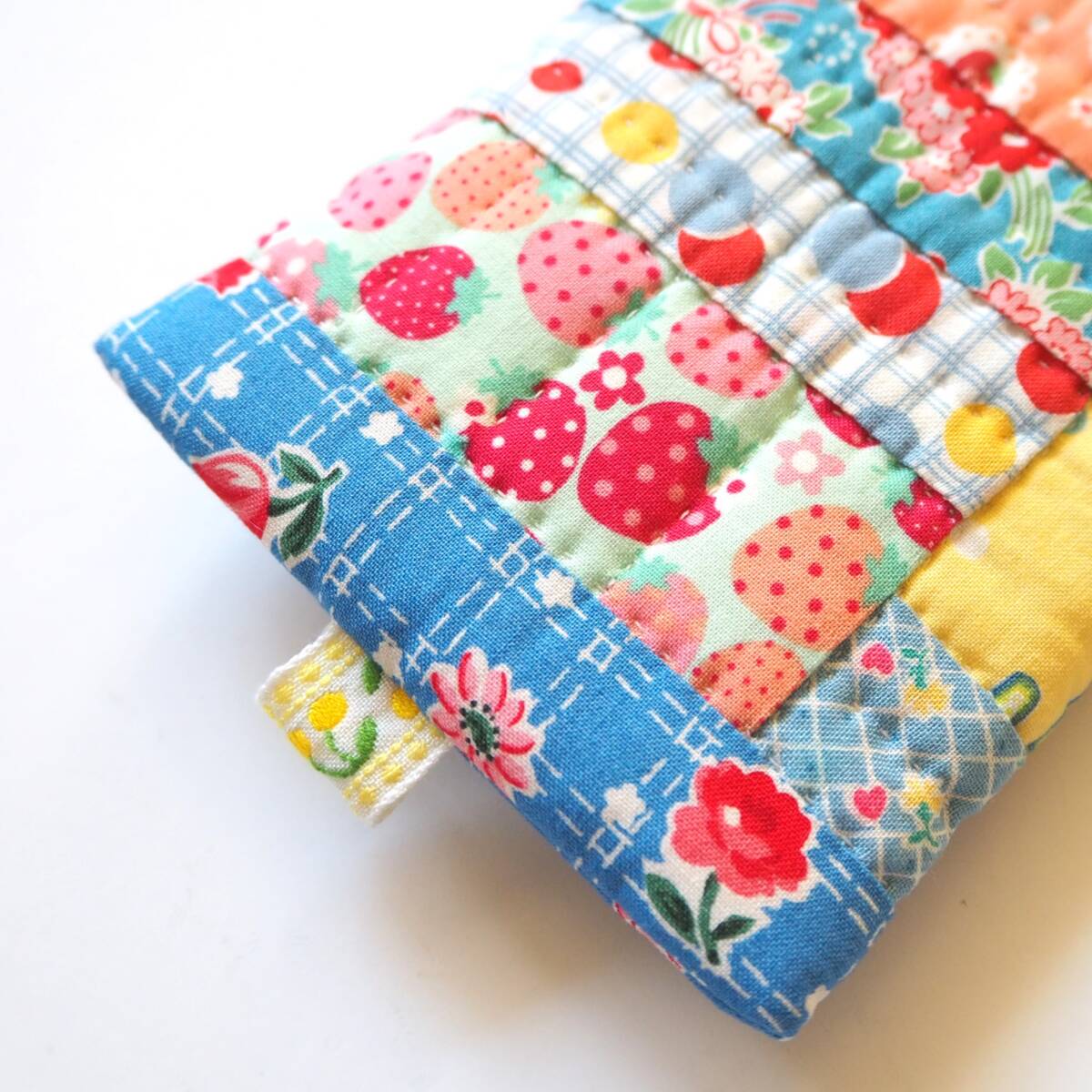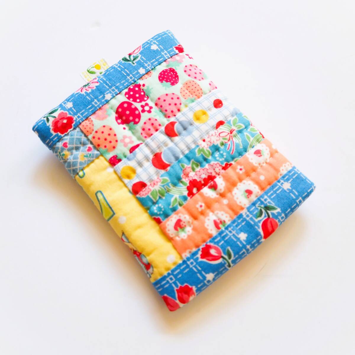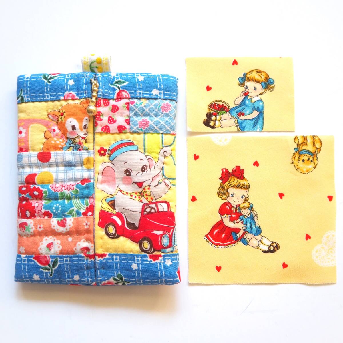 作成キット 青色マーガレット&ソフィー まんなかファスナーポーチ パッチワーク イヤホンケースティッシュケースに!ハンドメイド松山敦子