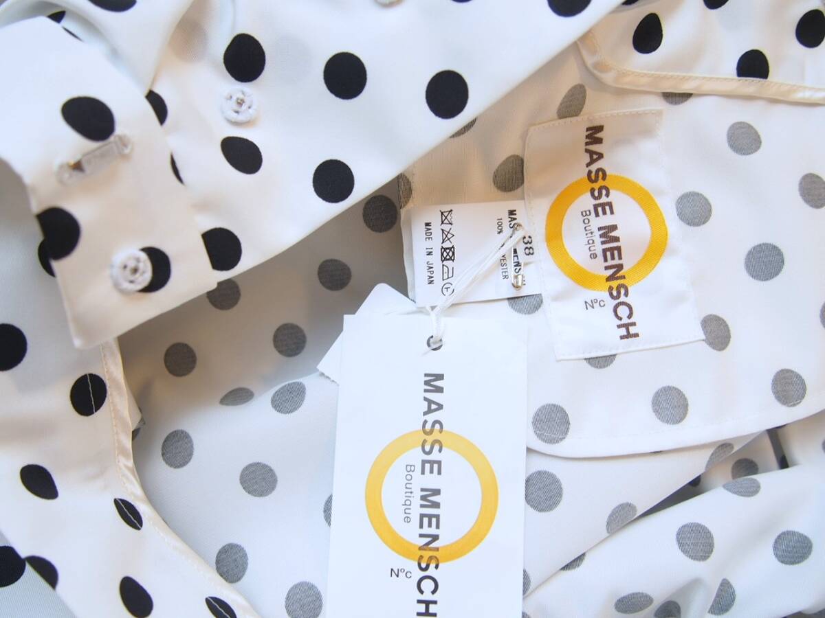マッセメンシュで定番て的に作られているシルエットの人気シリーズ。無地やレオパードなどのものがありましたが、ドットは新作で今季だけのものかと思います。