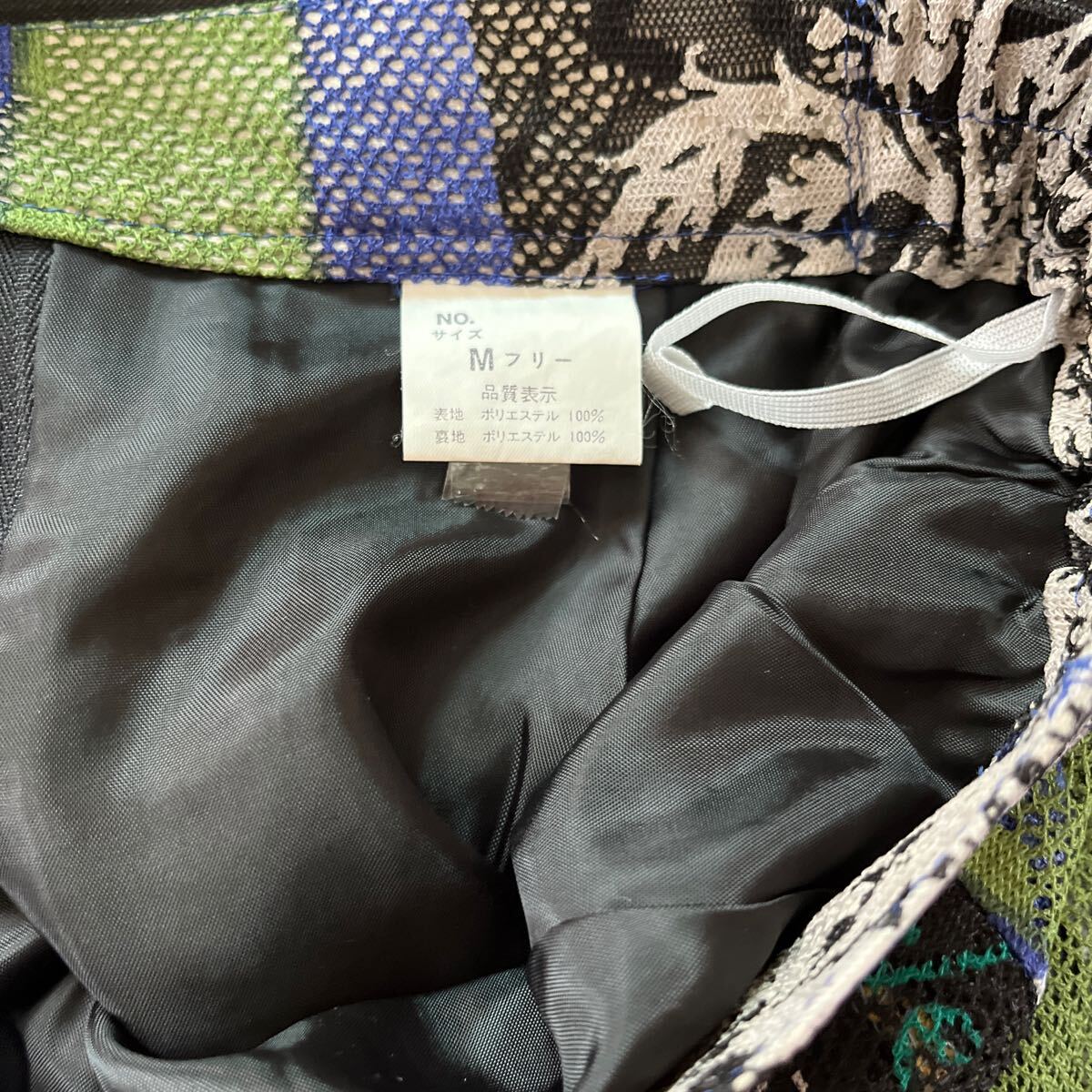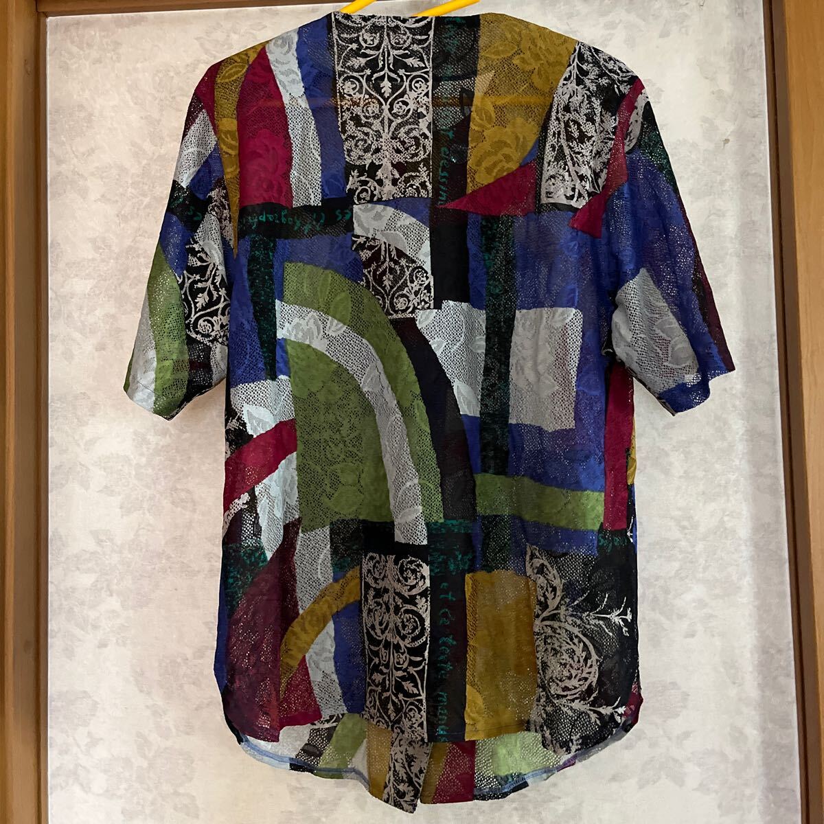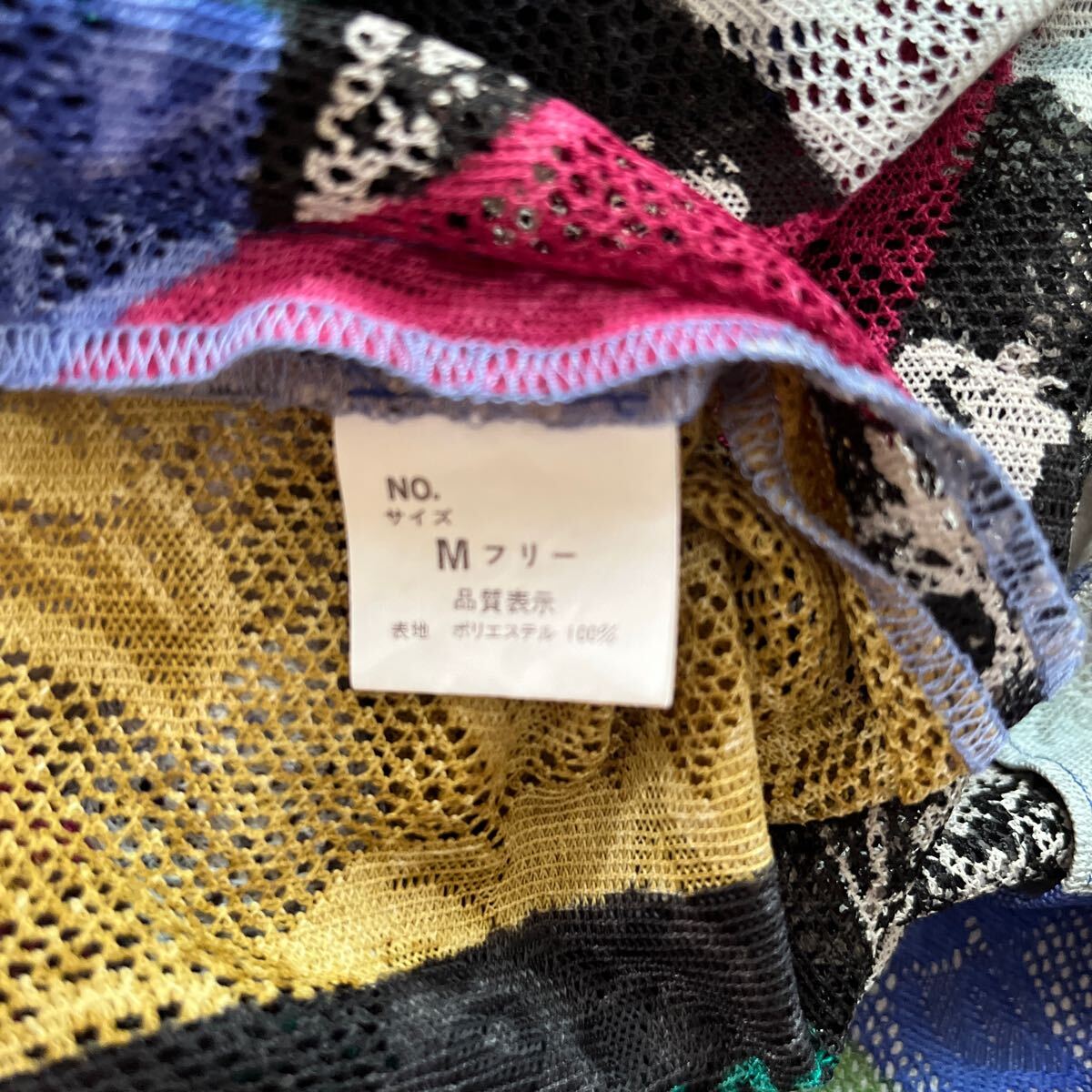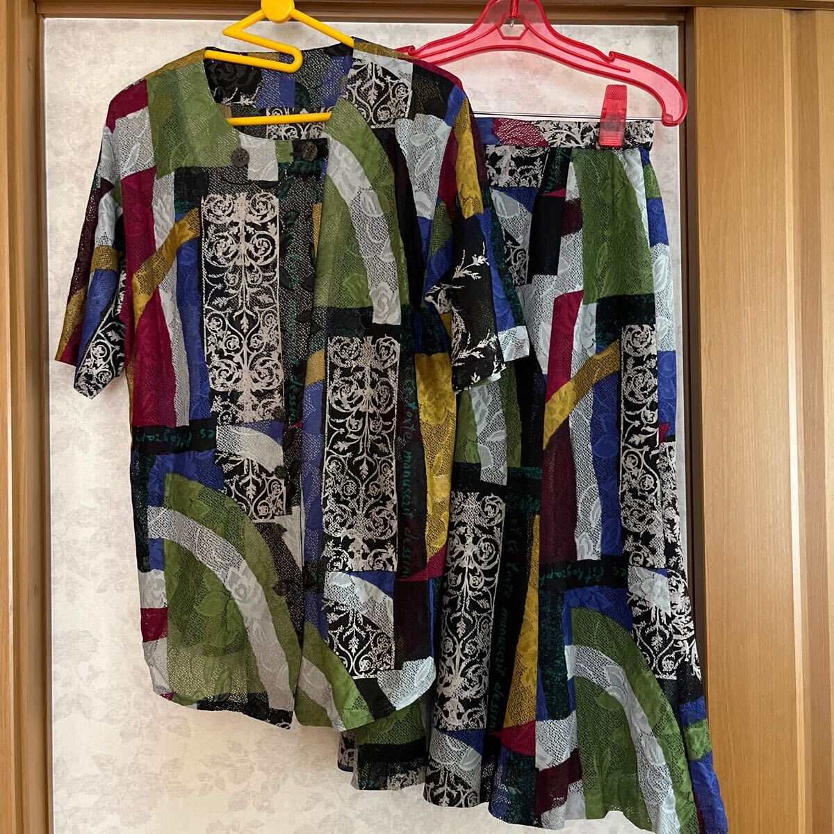 ★メッシュ★カラフル ツーピース 半袖ジャケット&マーメイド フレアスカート総柄 Mフリー ポリエステル100% 肩パッド付き です。
