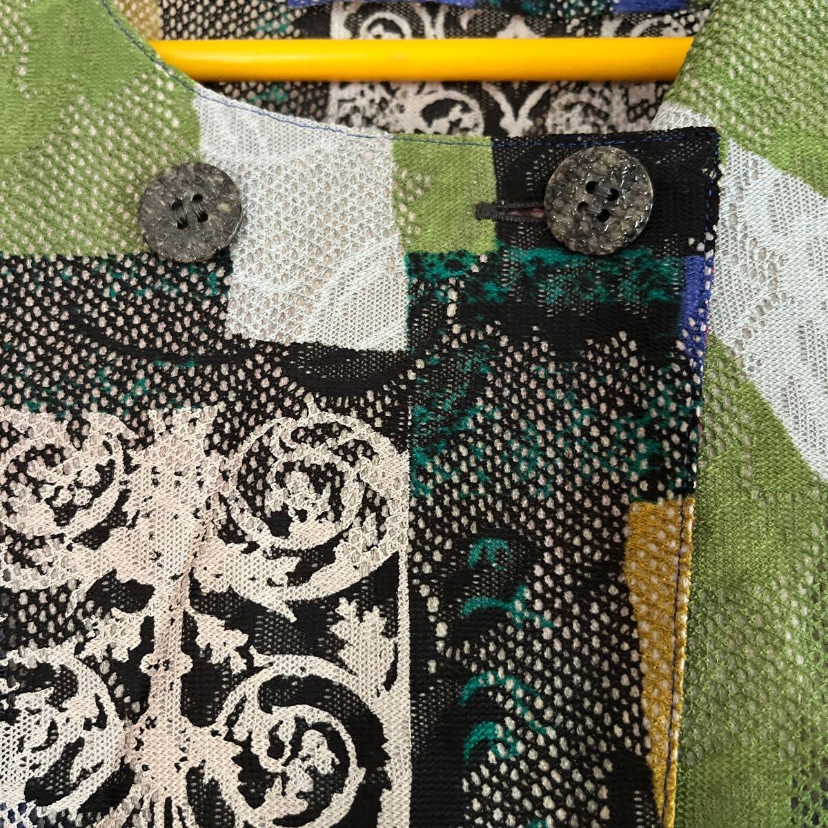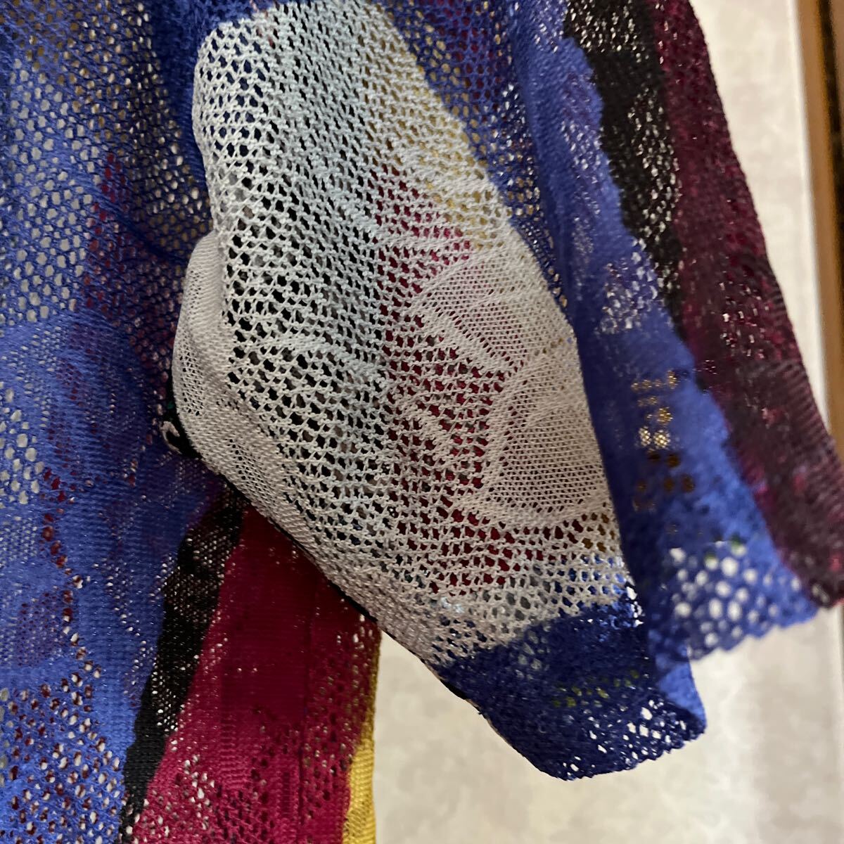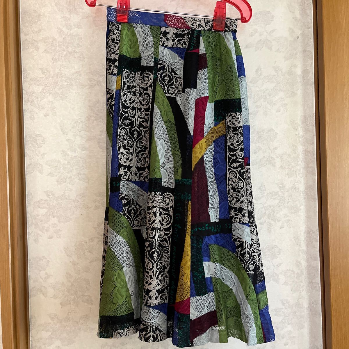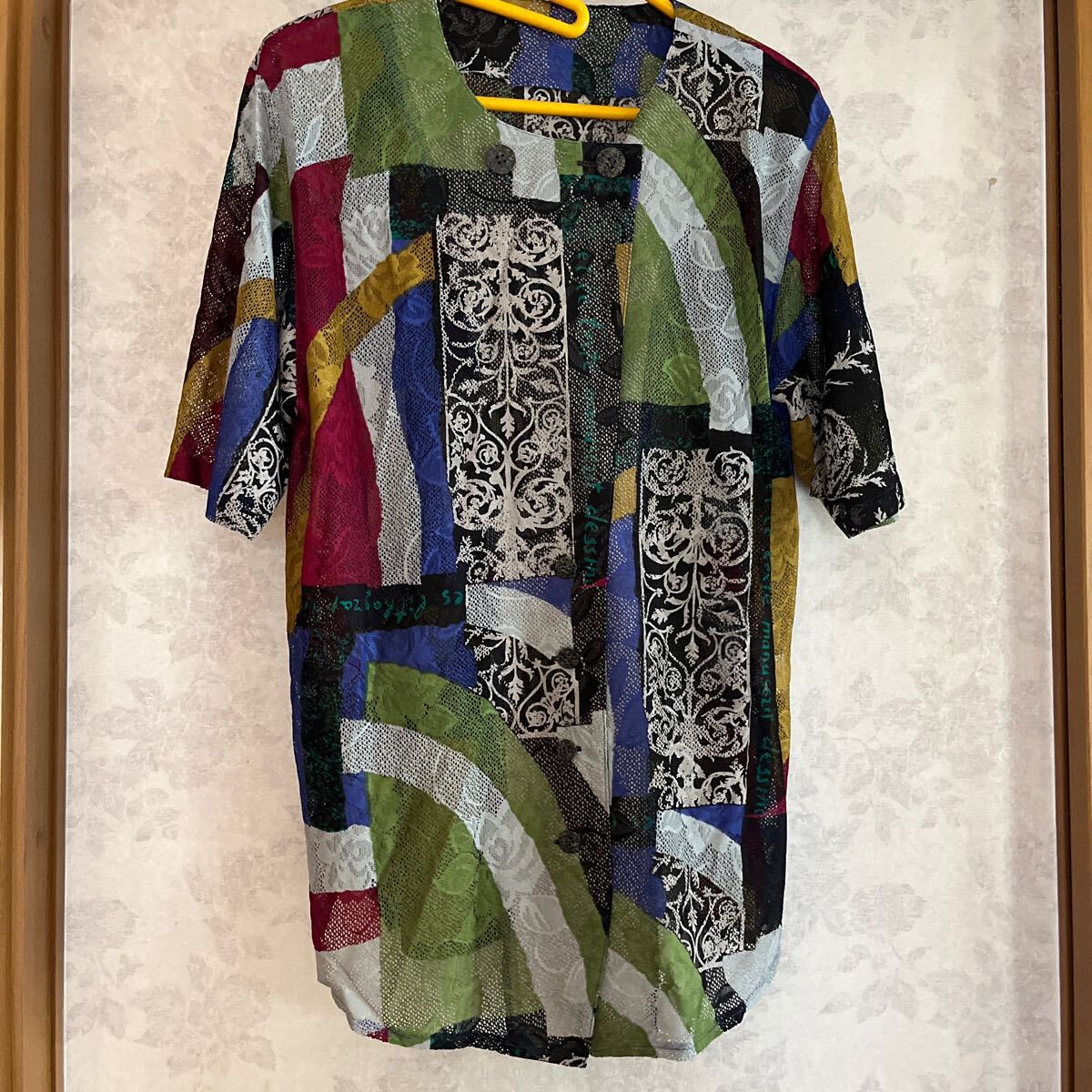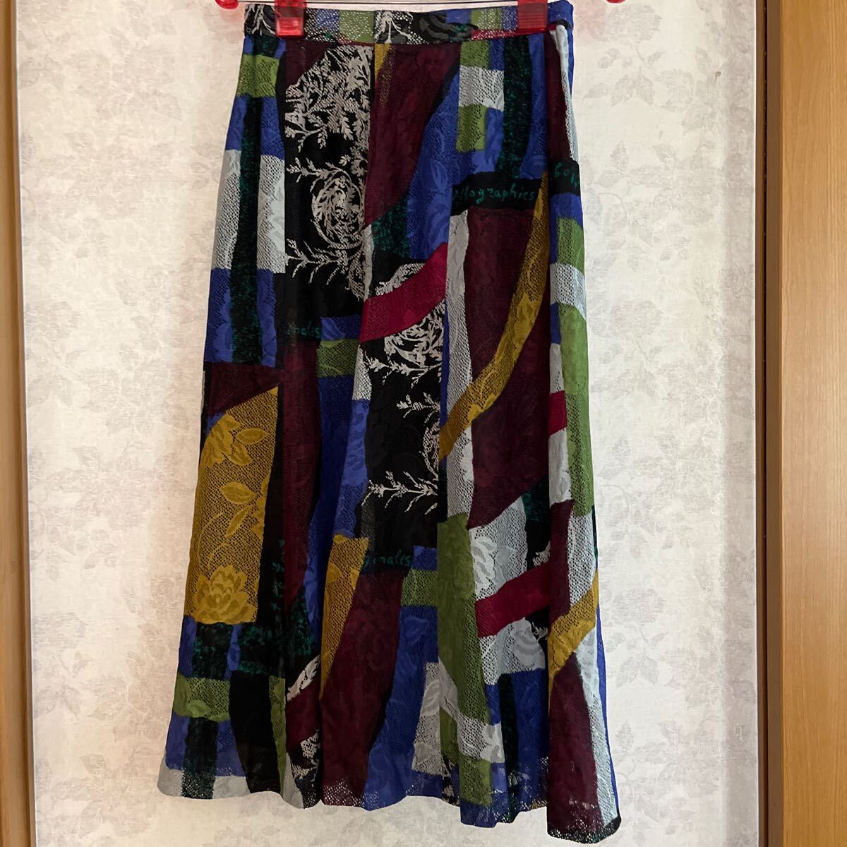 ★メッシュ★カラフル ツーピース 半袖ジャケット&マーメイド フレアスカート総柄 Mフリー ポリエステル100% 肩パッド付き です。