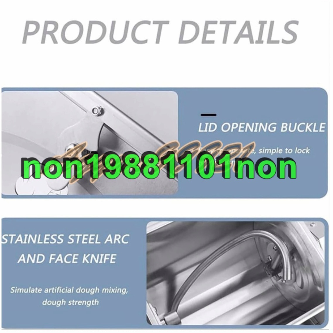 ●商品未使用 ★状態:新品未使用 ?【素材】生地ミキサーは食品グレードのステンレス鋼でできており、耐食性、耐摩耗性、耐久性があり、変形しにくく、表面が滑らかでお手入れが簡単です。 ?【手作りの模倣】スパイラル混合デザイン、生地を混合するときに行き止まりがなく、手動で回転/混練/回転やその他のステップをシミュレートし、均一に混合し、手作り生地の噛みごたえのある質感を復元します。 ?【90°FLIP】市販の生地ミキサーで生地を混合する際、生地バケットを90°回転させると、生地をよりしっかりと弾力のあるものにすることができます。 ?【高効率】当社の業務用生地ミキサーは安定していて効率的です。 作業効率は3kgタイプで30kg/時間、5kgタイプで50kg/時間に達します。 これにより、時間と労力を節約できます。 ?【幅広い用途】多機能業務用フードミキサーは、生地、ペストリー、野菜ピューレ、マヨネーズなどを混合するのに最適です。ベーカリー、レストラン、ピッツェリア、業務用キッチン、食堂で広く使用されています。 商業生地ミキサー、ステンレス鋼ミキサー、パスタ麺ピザ作りのためのプロの生地混合機?仕様:製品名: 生地ミキサー製品材質:ステンレス鋼3kg小麦粉を一度に加える:1.5~3kg生産効率: 30 KG/H電力: 1.1kW所要時間:最大30分本体サイズ:41×24×34.5cm麺バケツサイズ:26×20×21cm5kg:小麦粉を一度に加える:2~5kg生産効率: 50 KG/H電力: 1.5kW所要時間:最大30分本体サイズ:48×30×41cm麺バケツサイズ:30×23×27cm?パッケージリスト:1 *生地ミキサー?ヒント:1. 麺をこねるときは機械のカバーを覆い、麺を混ぜるために麺バケツに手を入れることは固く禁止されています。2. 生地を混合するときは、モーターの焼損を避けるために、追加する小麦粉の量が生地バレルの容量を超えないようにしてください。3. 洗浄の際、麺桶に加える水の高さは、麺桶の側板の軸穴から水が溢れたり、側板の層間に水が流れ込んだりするのを防ぐため、シャフトの最下点を超えないようにしてください。 耐用年数に影響を与える。4. 本機は防滴型器具ですので、散水パイプによる清掃は禁止されています。