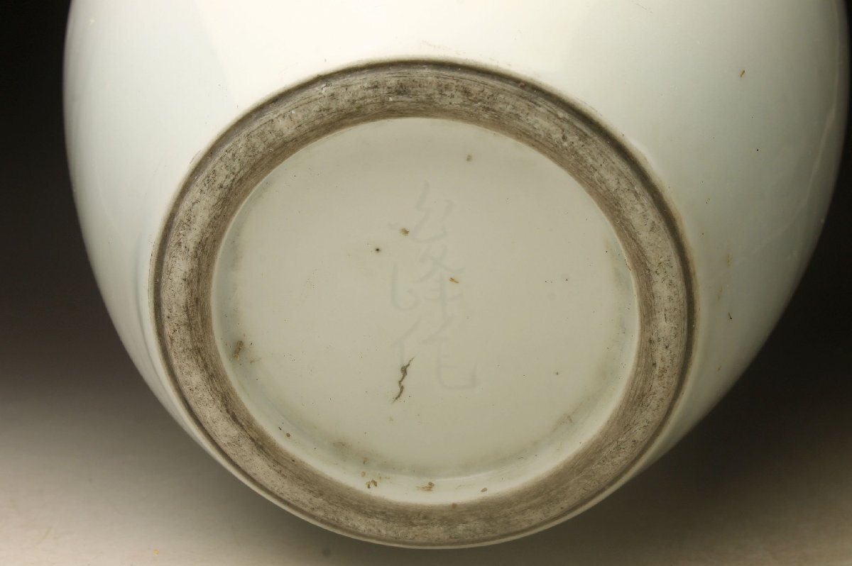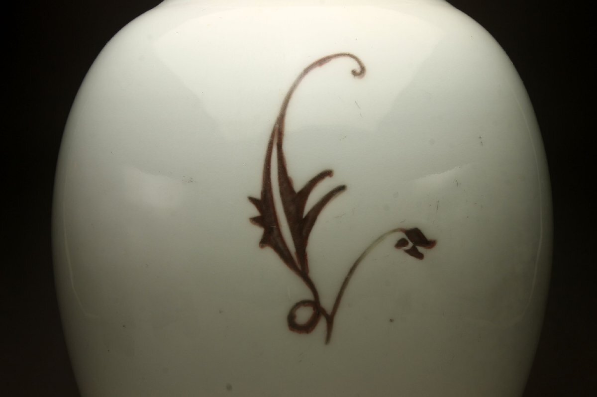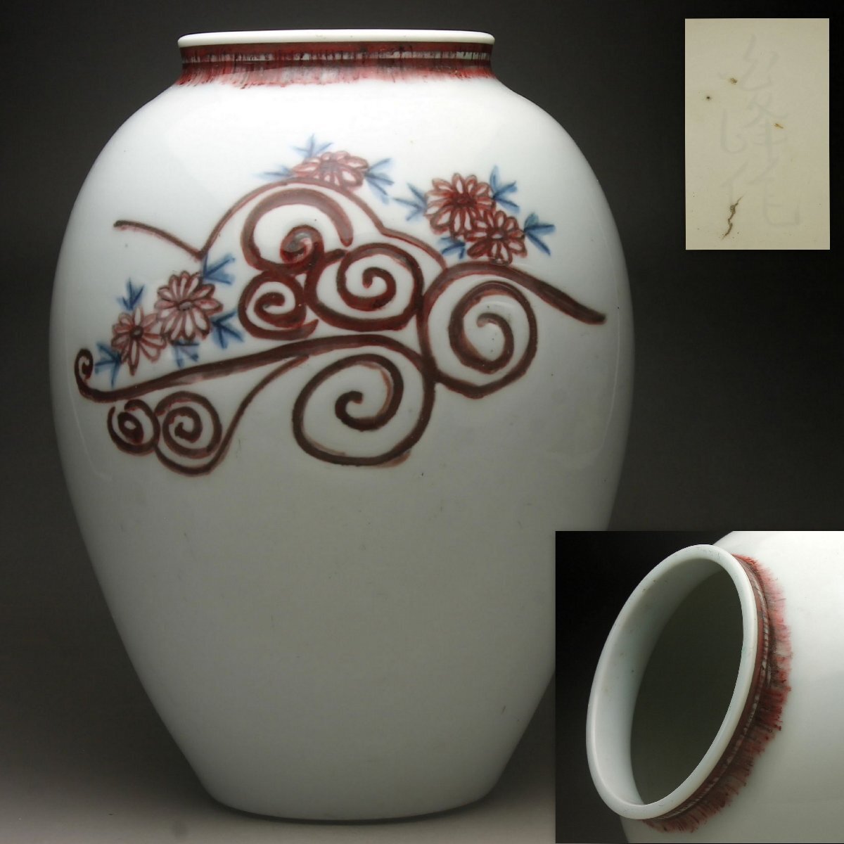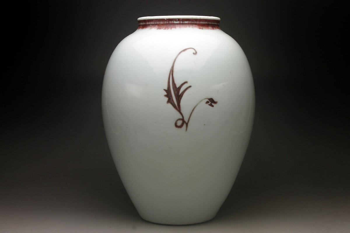 【余韻】 京焼 金峰作 釉里紅 菊文 花瓶★高さ:25.5cm 華道具 無傷美品<同梱可>
