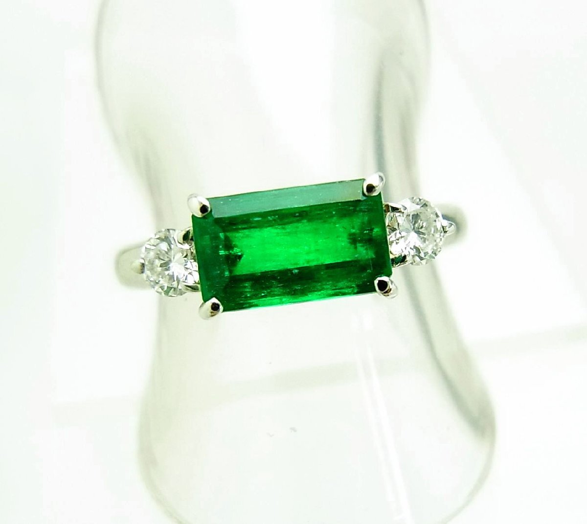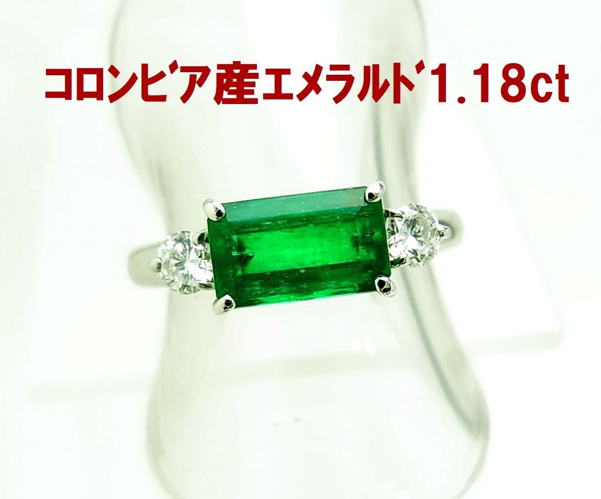 コロンビア産特級天然エメラルド1.18ct 両サイドラージメレダイヤ入 プラチナリング 卸価格 商品動画あり 送料込