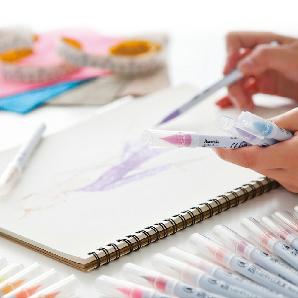 毛筆タイプで、細い線とベタ塗りの両方を簡単に描くことが可能です。 イラストやスケッチに水彩イラスト・レタリングなどにも最適です。水性染料タイプなので水筆などで「ぼかし」「にじみ」も楽しめます。