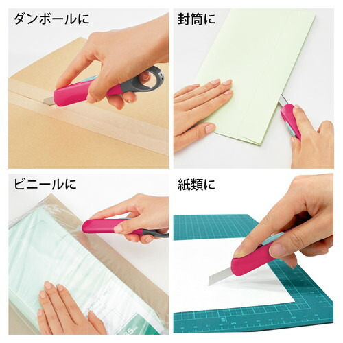 長持ち加工で切れ味続く、折らない刃のカッター。折らなくても切れ味続く長持ち加工刃!凹凸表面加工&全面フッ素コートでベタつきにくく、サビに強いステンレス刃です。