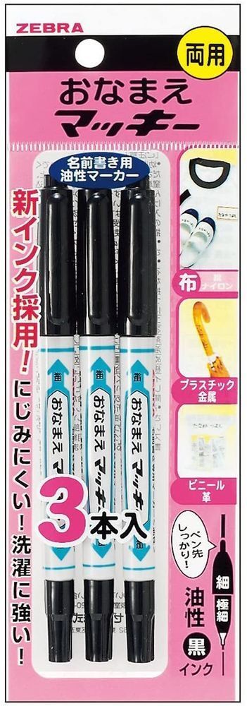 しっかりと書きやすいチップを採用。布以外に名前を書く頻度の高い、ビニール袋、プラスチック、金属など、幅広くご使用いただけます。