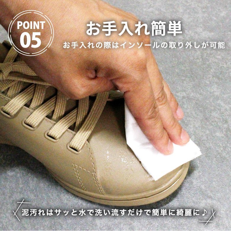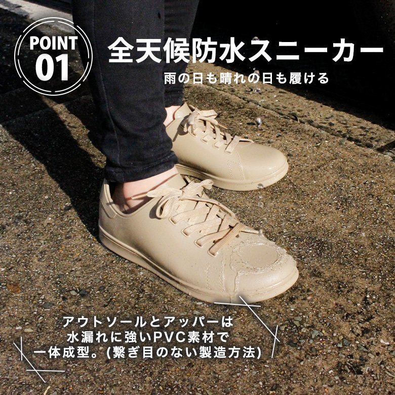 ・雨の日のお出かけや通勤・通学、洗車やガーデニングに。スニーカーデザインだからオフィスカジュアルにも合わせやすい。