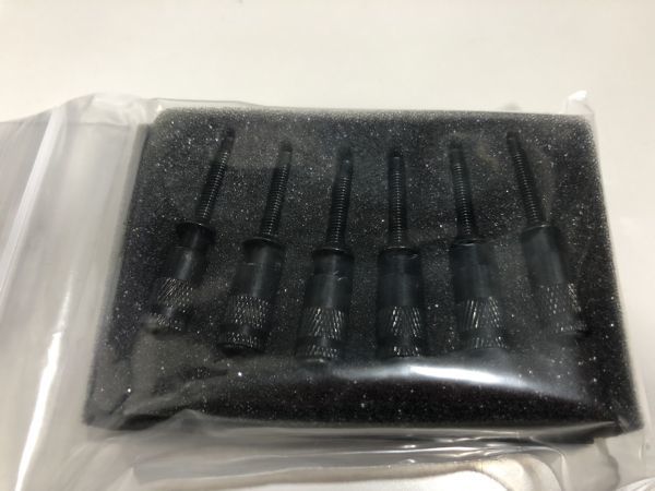この度、当店では Black Cherry USAの「Hollow Point(R)」取り扱いを開始いたしました。 Hollow PointはFloyd Roseトレモロで一度は悩んだ事のある オクターブチューニングの追い込みを主眼として開発されましたが トレモロのドレスアップとしてはもちろん、 ブラス製であることから重量増加(6個で約30グラム)による サスティンの増加にも期待できるという一石三鳥のアイデアツールです。 【当店にて取り付け・使用可能を確認しているトレモロ】 ・Floyd Rose Originalシリーズ ・Floyd Rose Specialシリーズ ・Schaller FRT-IIシリーズ ・Schaller Lockmeisterシリーズ ・Schaller Lisensed Tremoloシリーズ ・Ibanez Edge (初代のみ) 【当店にて不適合を確認しているトレモロ】 ・Gotoh GE1996T (そのままではクローのテンションがきつく、Hollow Pointが削れてしまいます) インストール方法、詳細は https://www.makotosystem.com/?cat=12 をご覧下さい。 「当店にて取り付け・使用可能を確認しているトレモロ」以外での 動作は一切保証いたしませんのでご注意下さい。 上記URLにて適合・不適合のポイントを解説していますので 他のライセンス品をお持ちの場合は参考にしてください。 【内容物】 ・Hollow Point(R) x6 (専用ロックスクリュー付き) ・レンチ3種 ・インストラクションカード ※ トレモロ本体は付属しません。 写真は分かりやすいようにゴールドを主に使用しています。 2枚目の写真が内容物の全てです。 ※ 2020年より新パッケージに変更になっています。 当商品はアメリカよりの正規輸入品です。 輸入品のお約束でパッケージ表面に擦り傷がある場合がございます。 本体には問題がございませんのでご了承下さい。 (メーカー希望小売価格:7980円+税) 福岡よりネコポス、ゆうパケット等(送料無料)にて発送です。 他色・他仕様につきましては出品していなければ在庫はありません。 他色・他仕様に関するご質問を頂きましてもお答え致しかねます。 値下げ交渉も行っておりません。 複数落札の場合の「まとめて取引」申請はしないでください。 落札者削除ができない等のシステム不備があり、現在は全てお断りしています。 必ず「単品取引」にてお願いします。 |