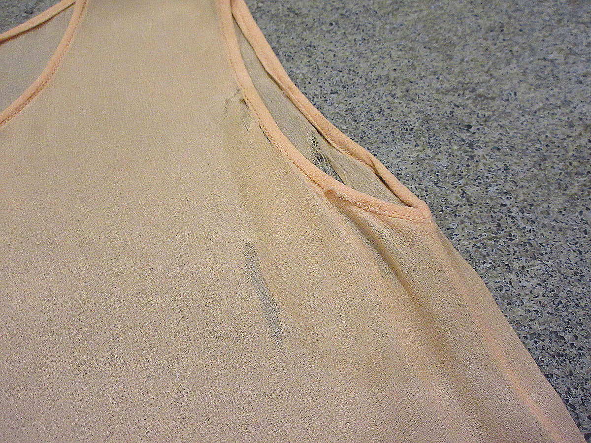 両脇にシミ、裾のレースにダメージ、左脇にダメージ、ところどころに細かいダメージ