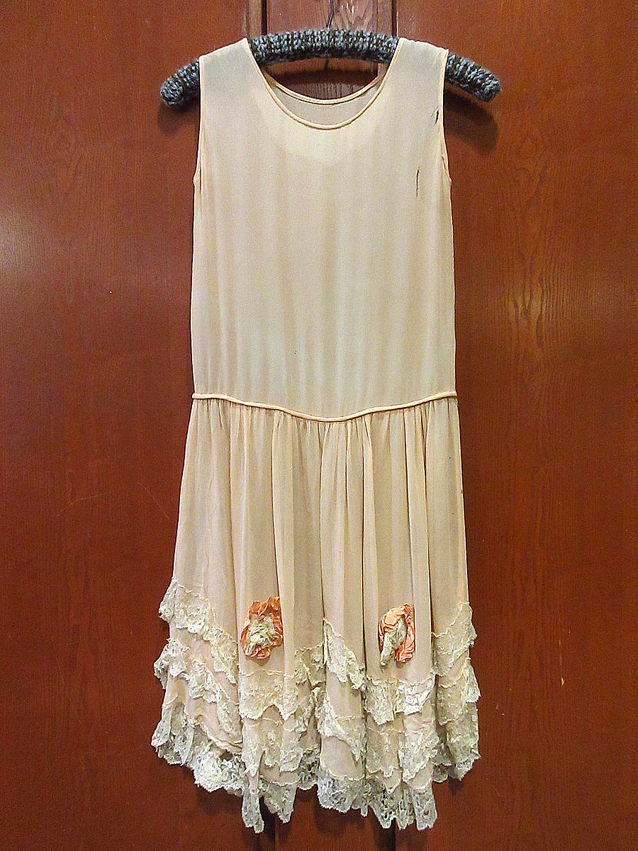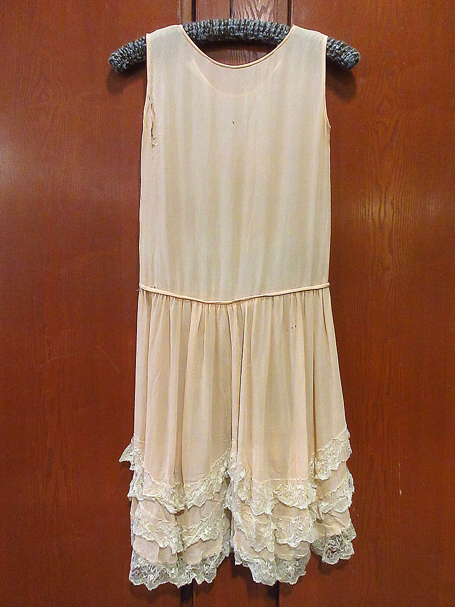 ビンテージ~20's●レース付きシースルーノースリーブワンピース●240704i1-w-nsdrsアンティーク1910s下着アンダードレスインナー