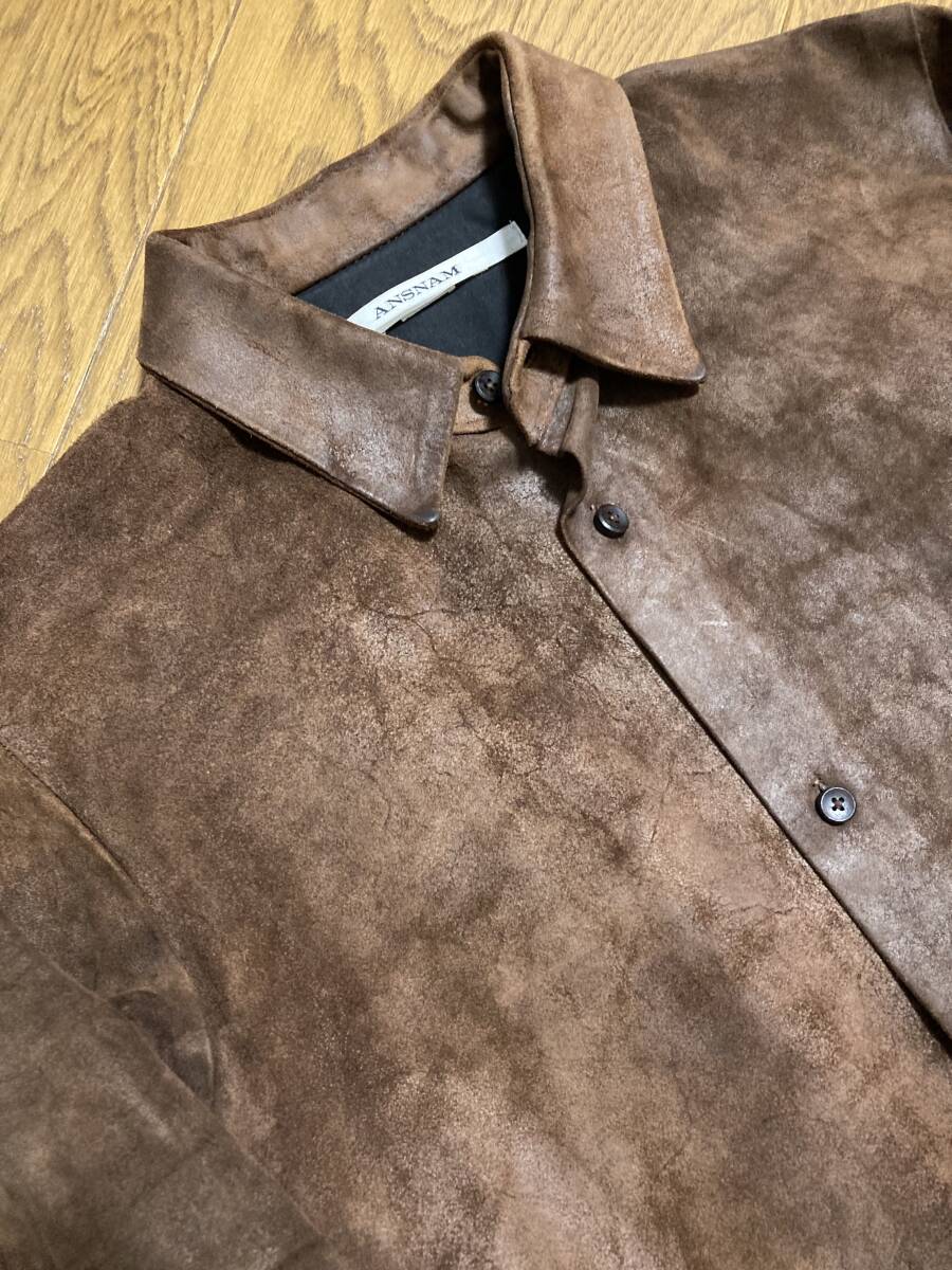 [ANSNAM] 定価165,000 atelier103 別注 GUIDI BABY CALF LEATHER SHIRTS グイディベヒーカーフ レザーシャツ 02 仔牛革 ブラウン 日本製 アンスナム