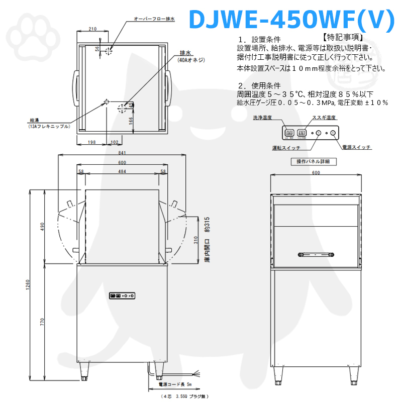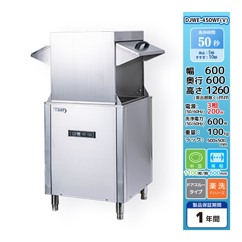 DJWE-450WF(V)【受注品】両面スルータイプ 食器洗浄機 シェルパ 幅600×奥行600×高さ1269mm 3相200V 別料金で設置/入替/回収【新品】