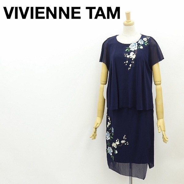 | ◆VIVIENNE TAM ヴィヴィアンタム フラワー刺繍 パワーネット トップス&スカート セットアップ 紺 ネイビー 38 | |
