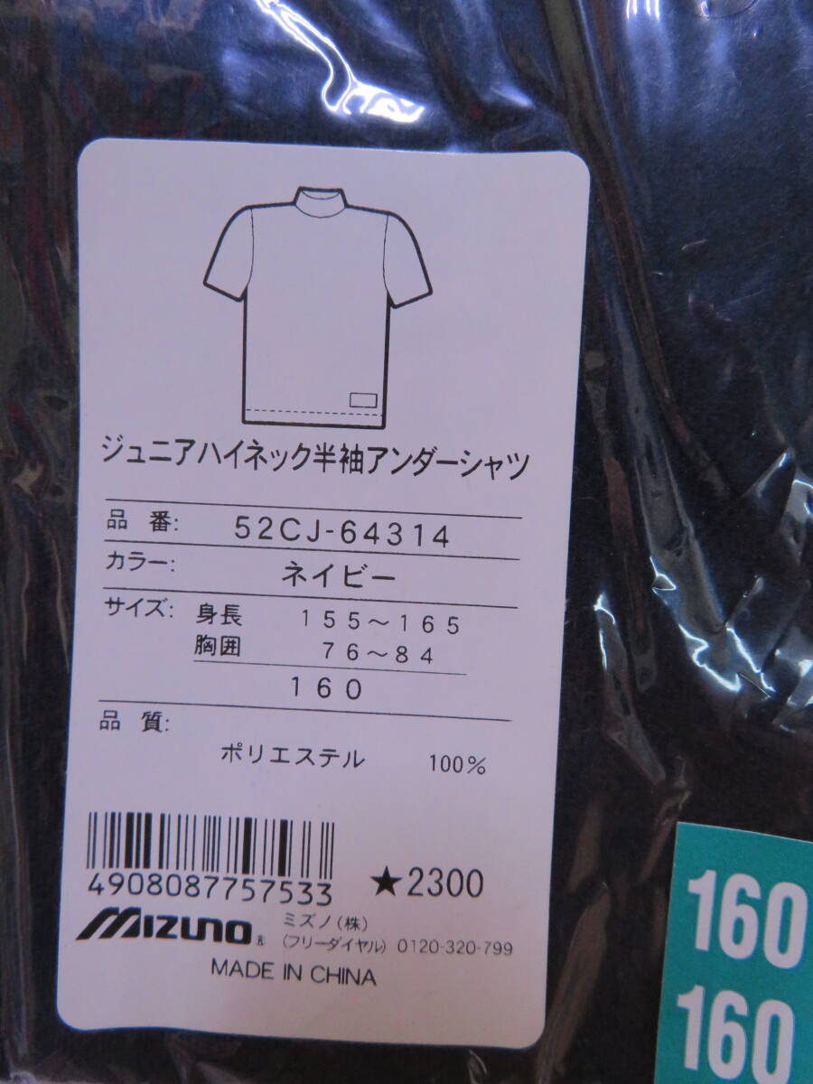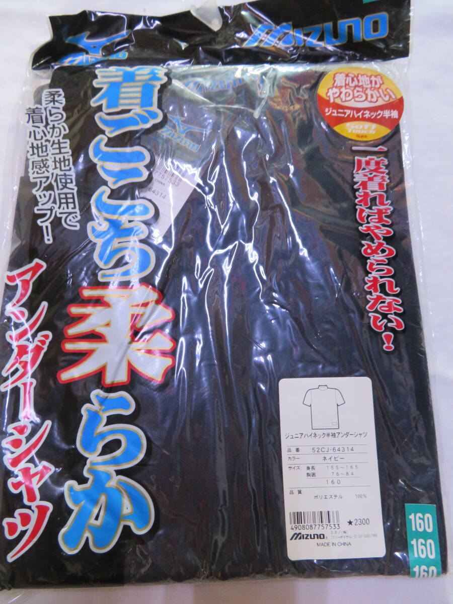 154 ミズノ JR用半袖ハイネックアンダーシャツ紺160