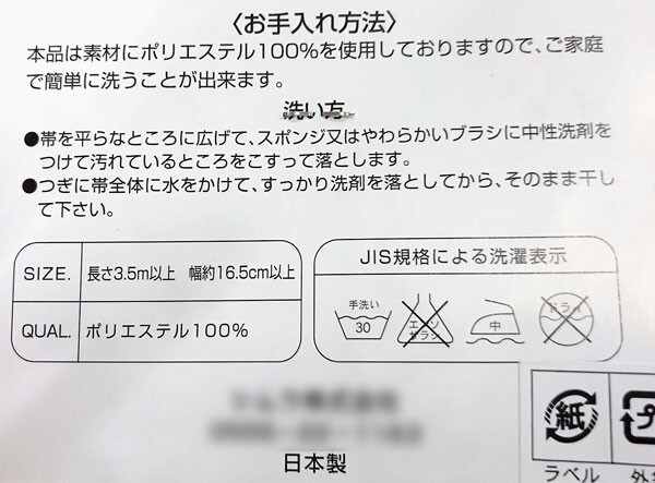 | 項目 | 半幅帯(浴衣帯) |